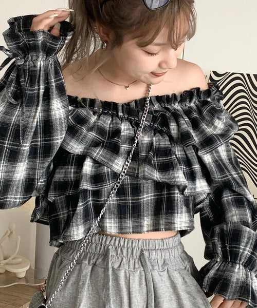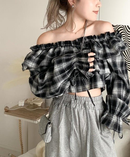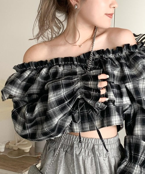 【mily bilet】全方位、美シルエット。フリル使いオフショル2WAYキャンディースリーブブラウス mi1139047