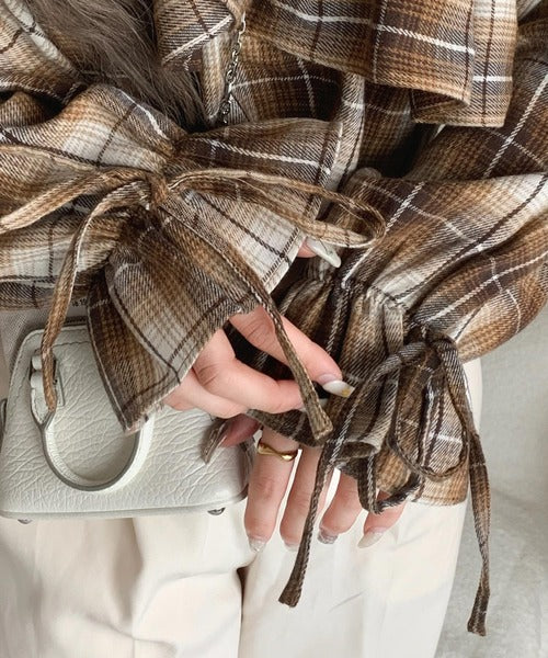 レトロチェック柄で仕上げ甘くなりすぎずカジュアルな印象に。