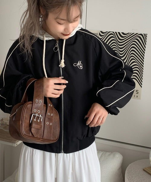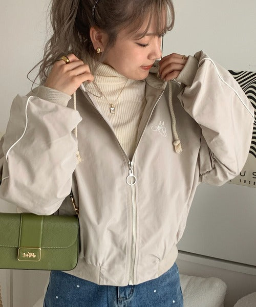 【mily bilet】スポーティ&おしゃれが叶う。サイドライン袖ギャザースウェットフード使い胸刺繍パーカーブルゾン mi1139049