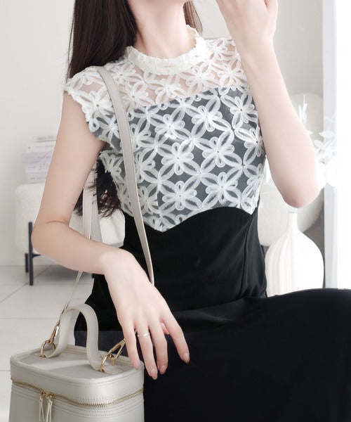 【mily bilet】華やか花モチーフが大人可愛い シアーレースノースリーブワンピース mi1139065