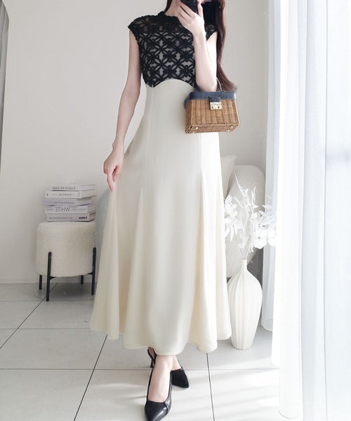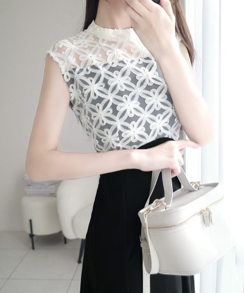 シアーレースノースリーブが華やぎと高級感をプラスする