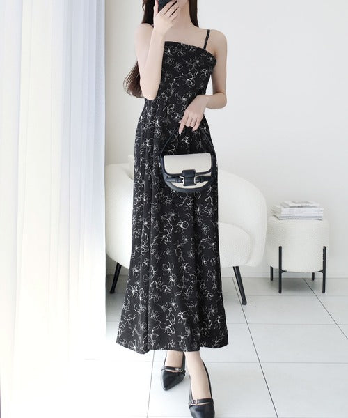 ガーリー好きにぴったりな線花柄キャミワンピに、