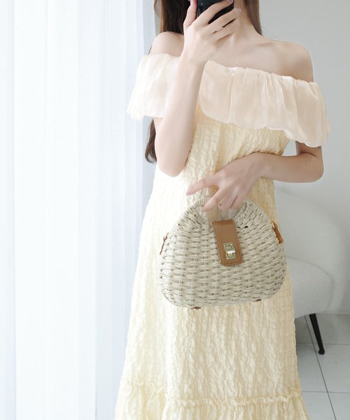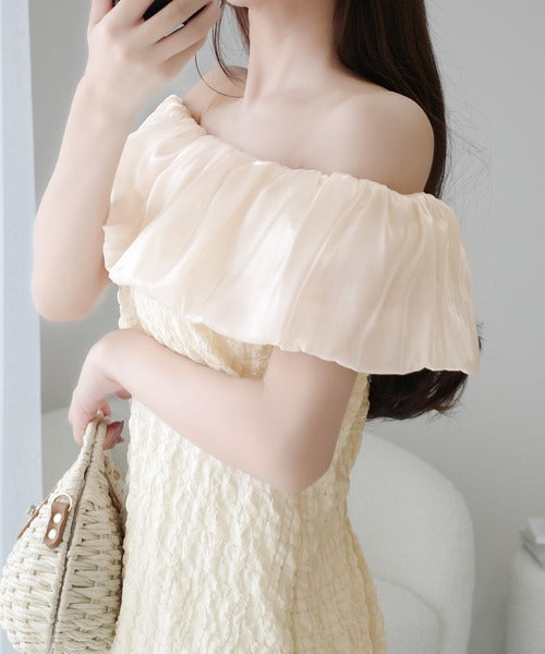 【mily bilet】甘さと気品を一枚に。ビッグオーガンジーケープ付きオフショル2WAYシアーエンボスワンピース mi1139087