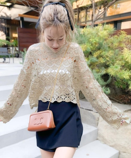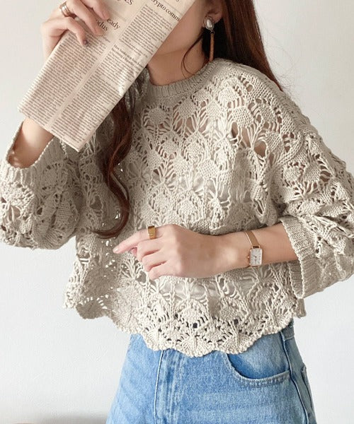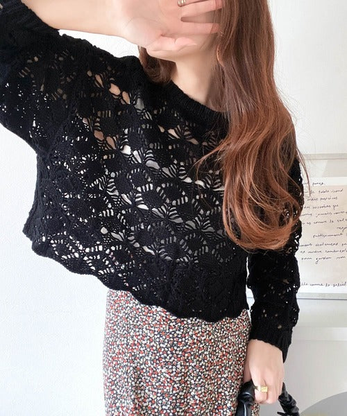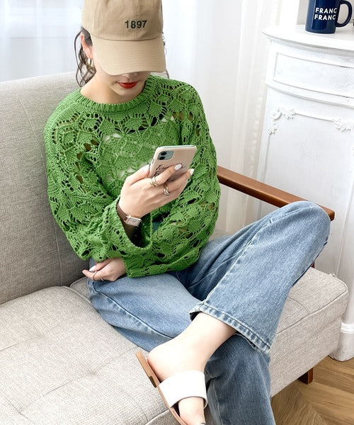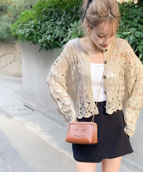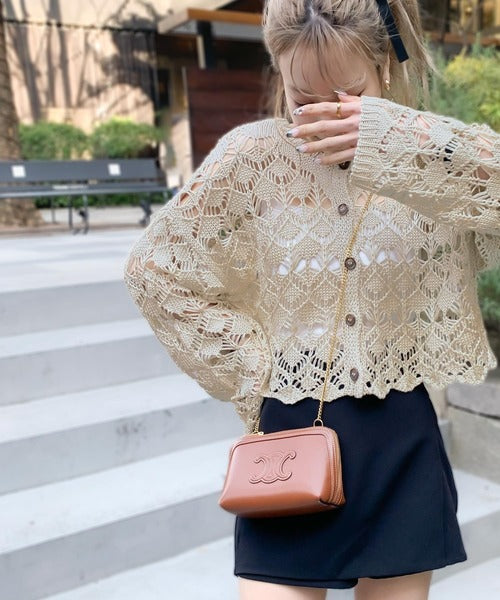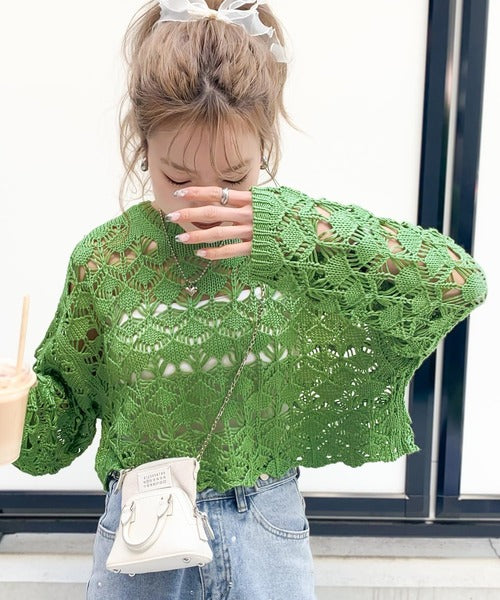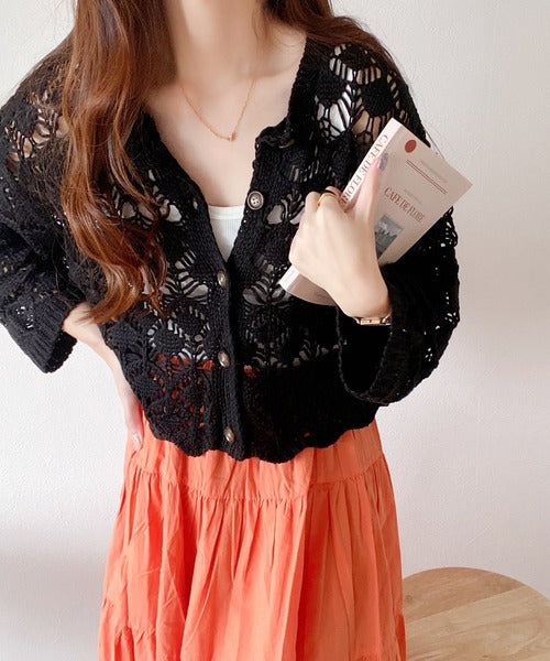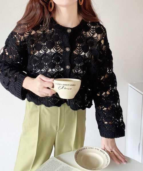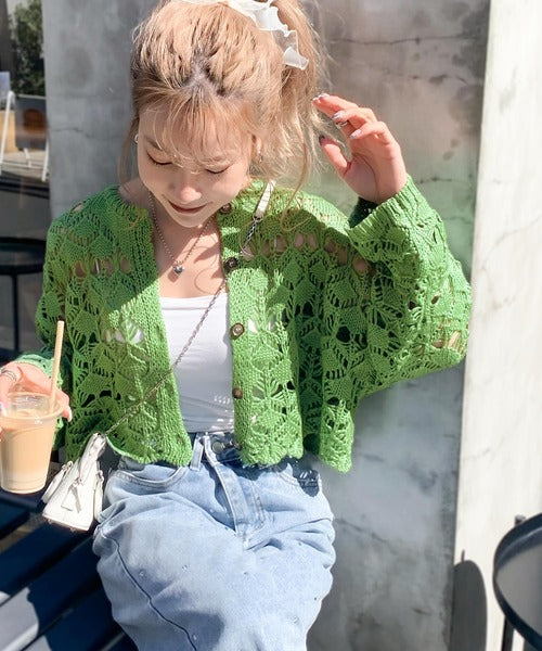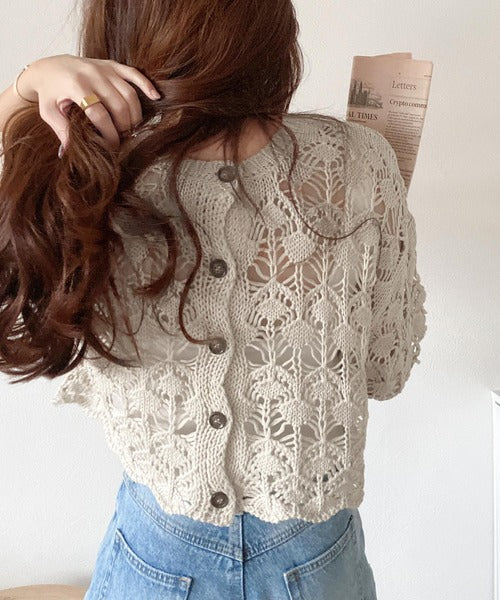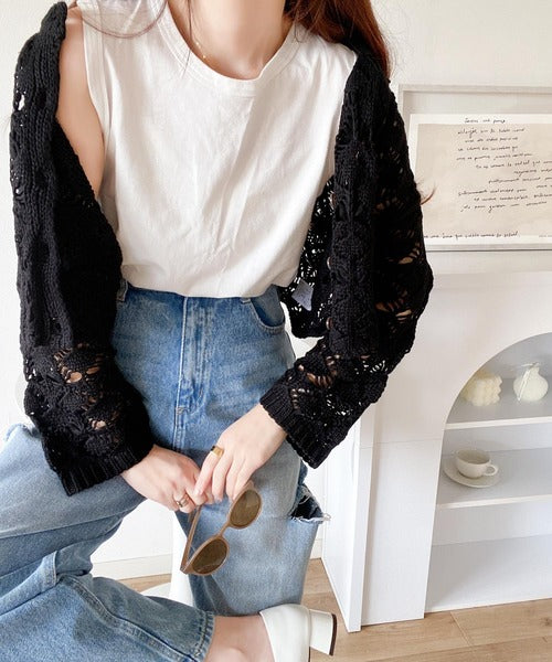 ヘルシーな肌見せ叶う、透かし編みが涼しげなニットカーデ。