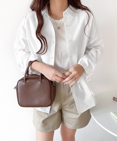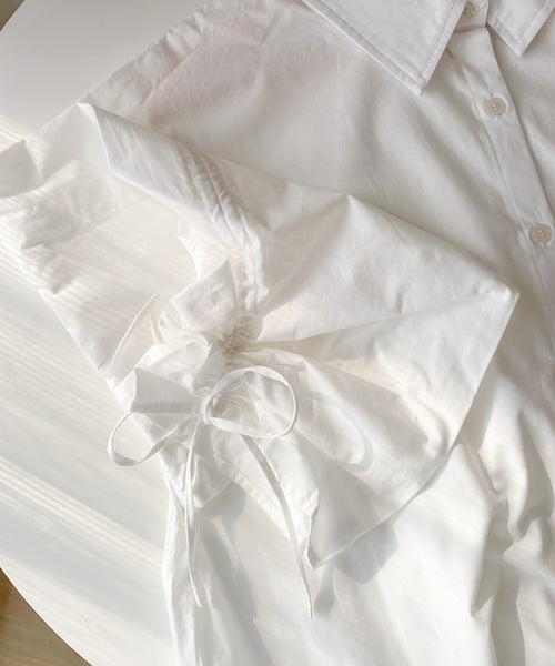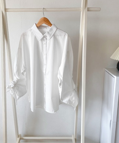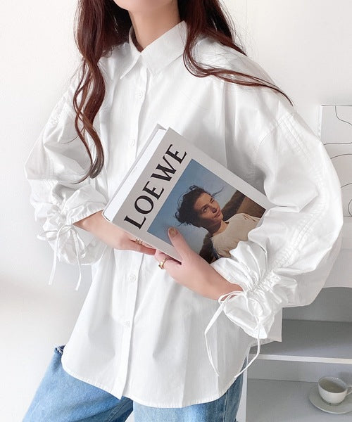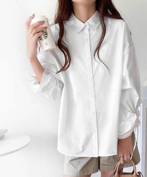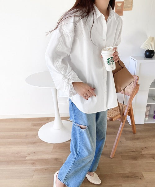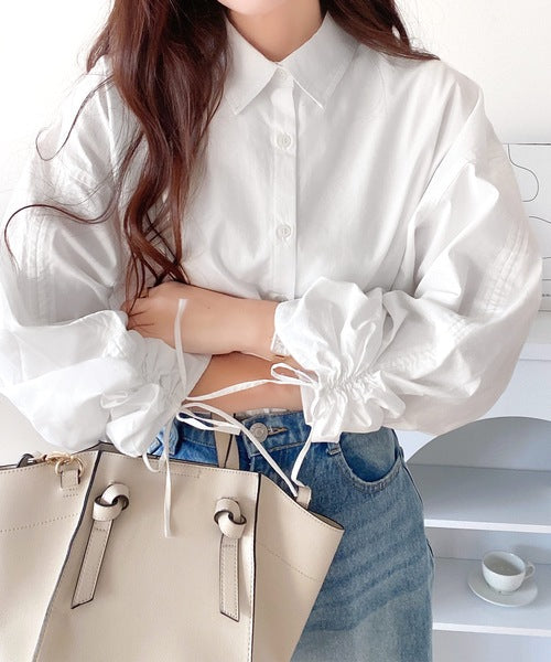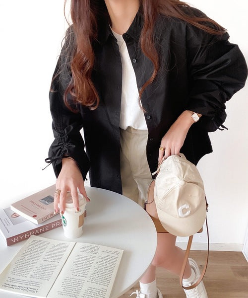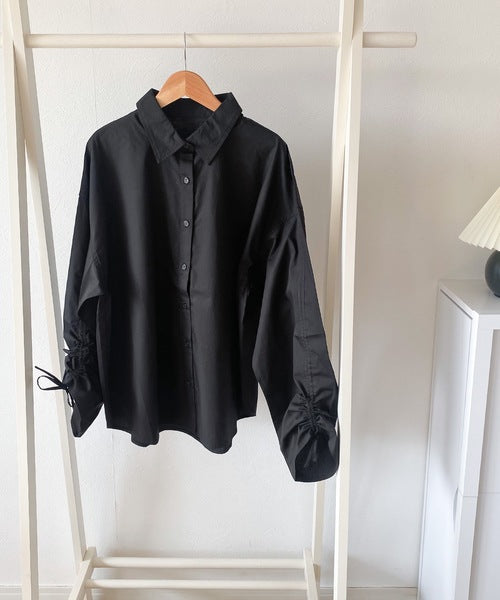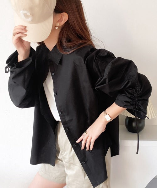 カジュアルシャツに袖シャーリングが施されたデザインシャツ。
