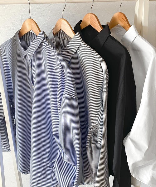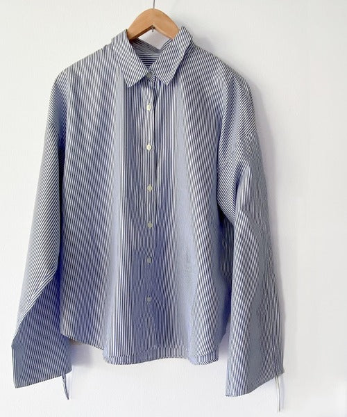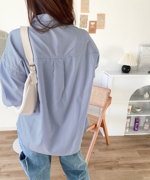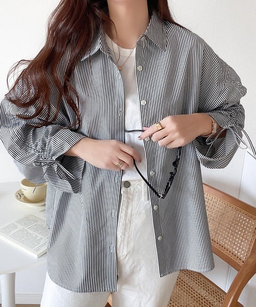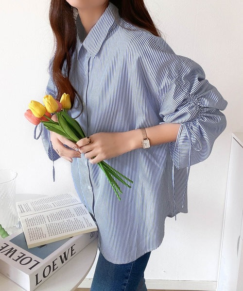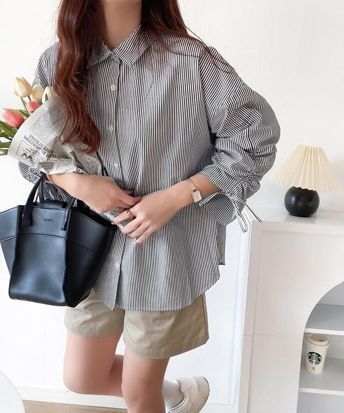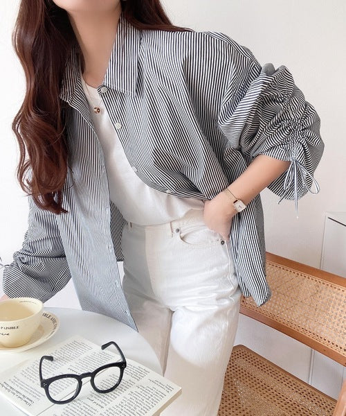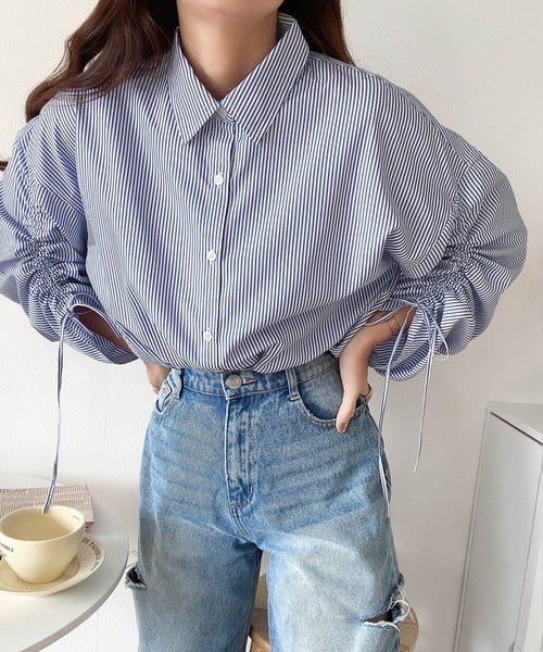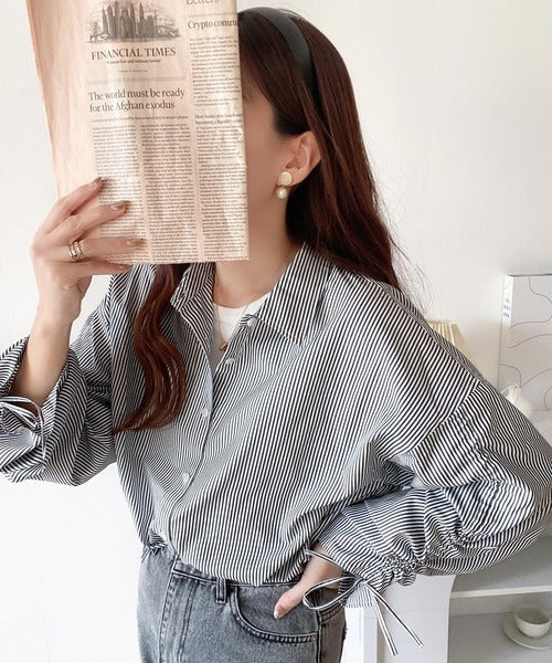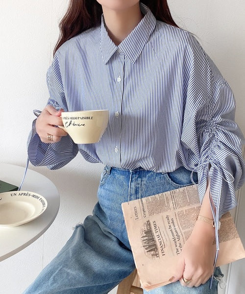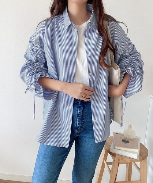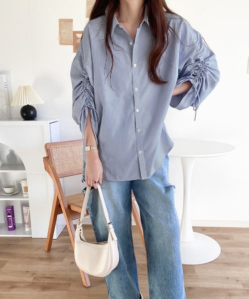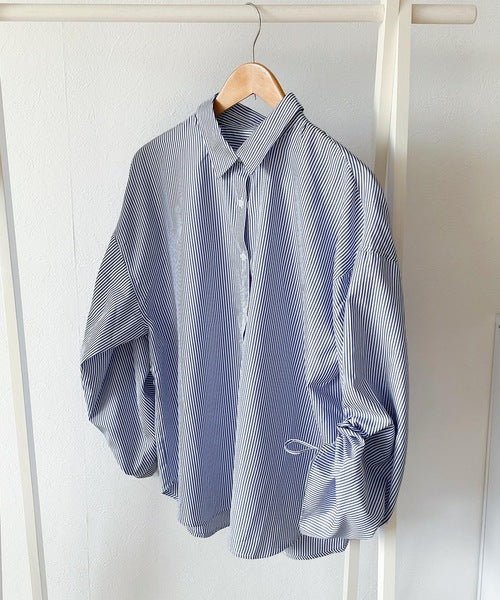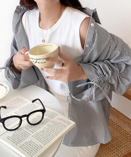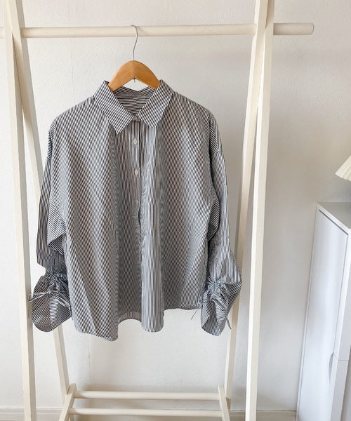 1枚でこなれ度up。ストライプ袖シャーリングシャツ mi1149015