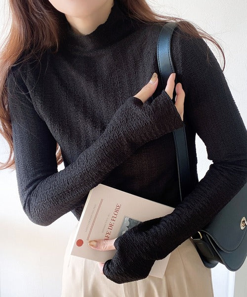 トレンドの指ぬきデザインでアームウォーマー風にも着用でき、