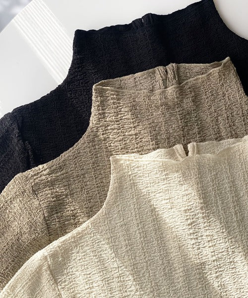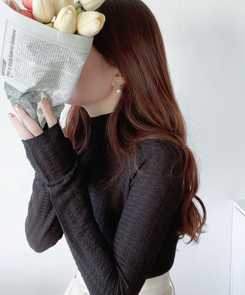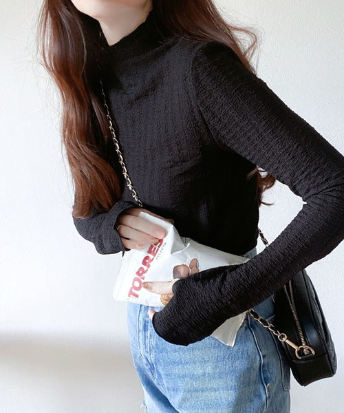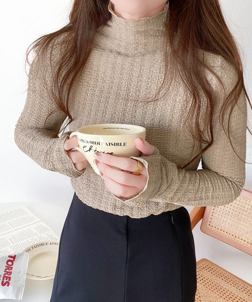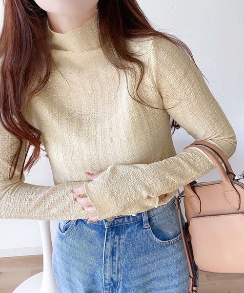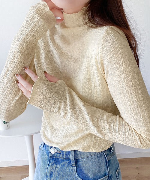 【mily bilet】春のマストアイテム。ふくれジャガード指穴タートルトップス mi1149016