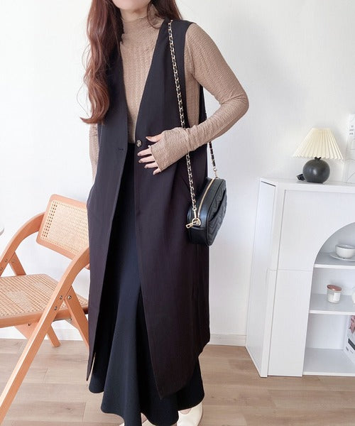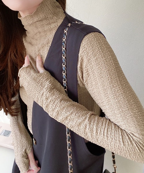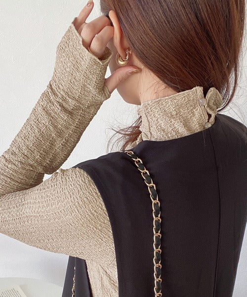 トレンドのハイネックはワンピースやニットカーデ、ジレとのレイヤードスタイルとも相性抜群◎