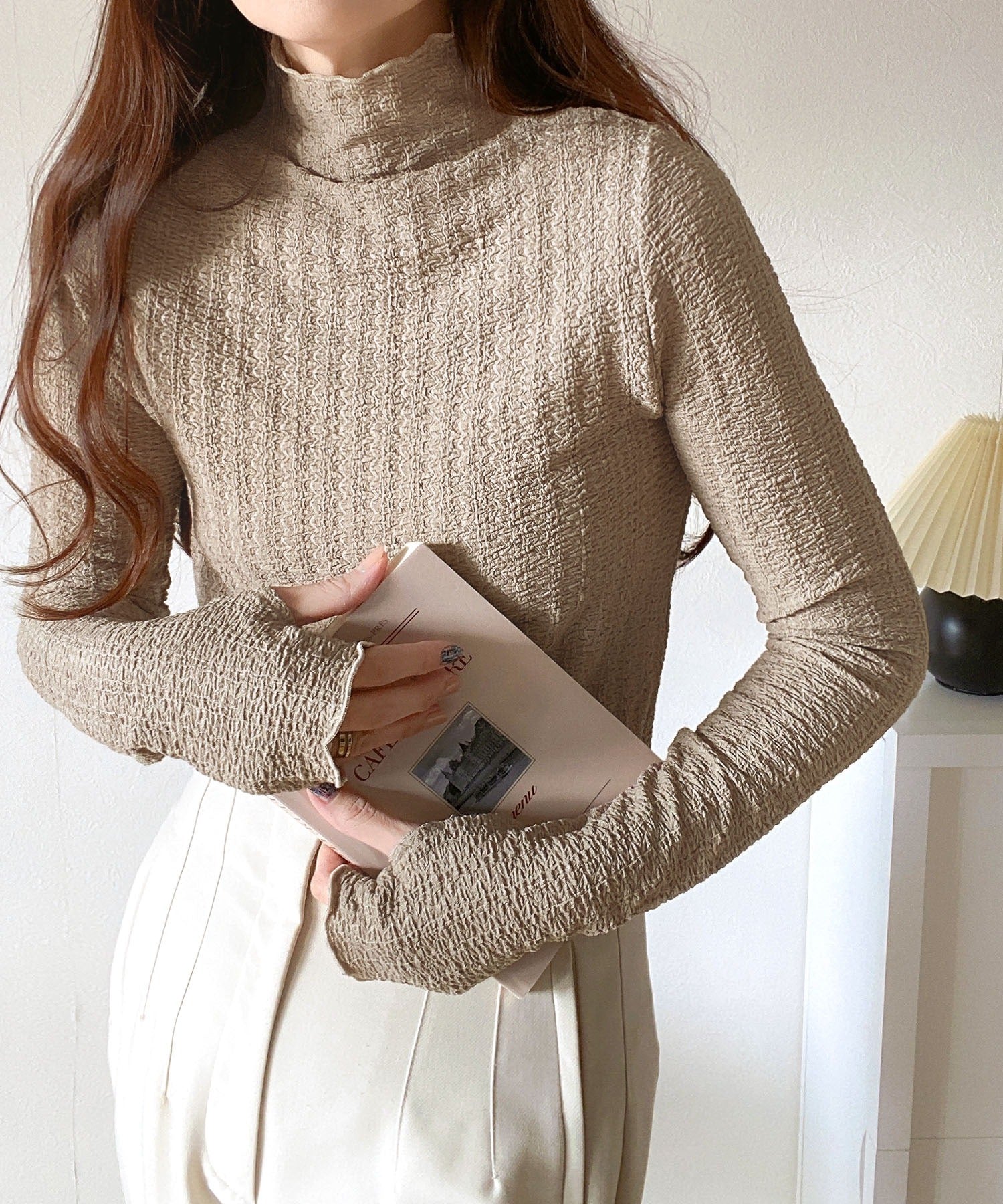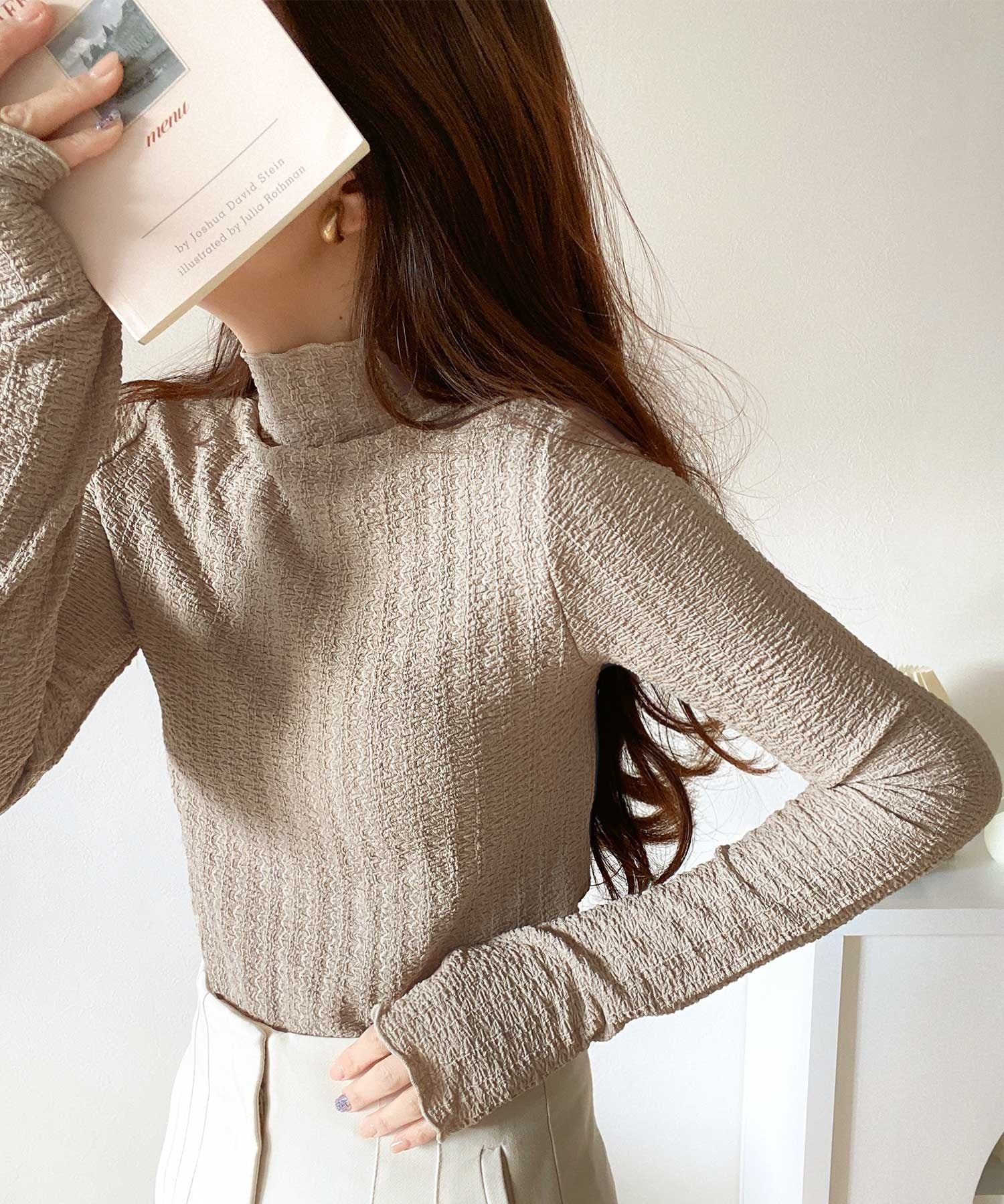 春のワードローブに欠かせない指穴タートルトップス。