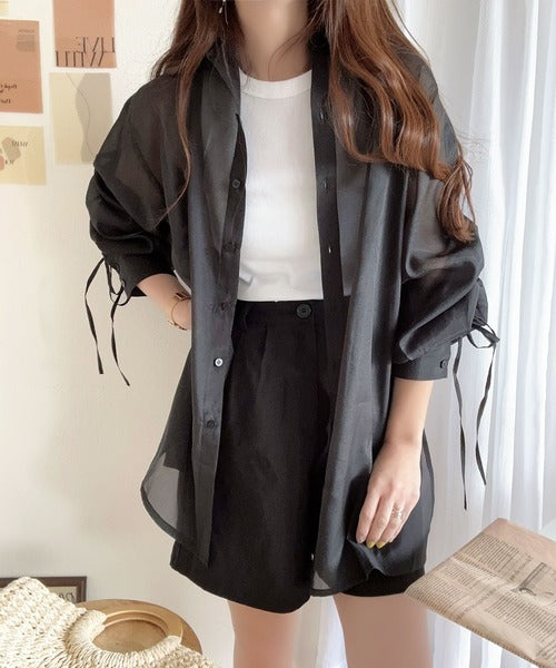 程よいハリのあるシアー素材は涼しげでこれからの季節に大活躍間違いなし。