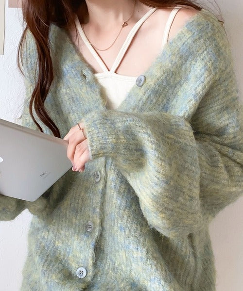 【mily bilet】女っぽリラクシー。前後2wayミックス糸シャギーニットカーディガン mi1149028