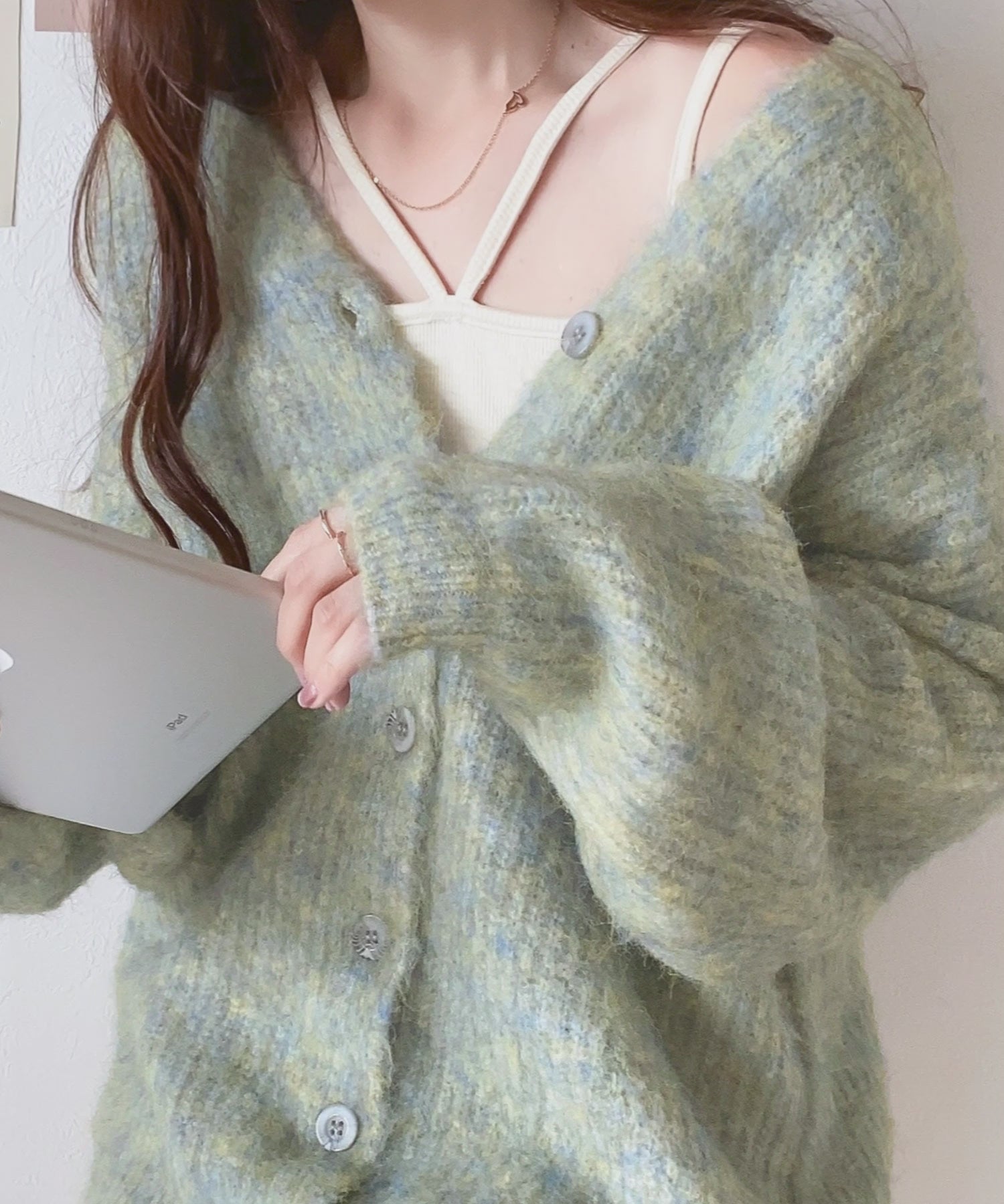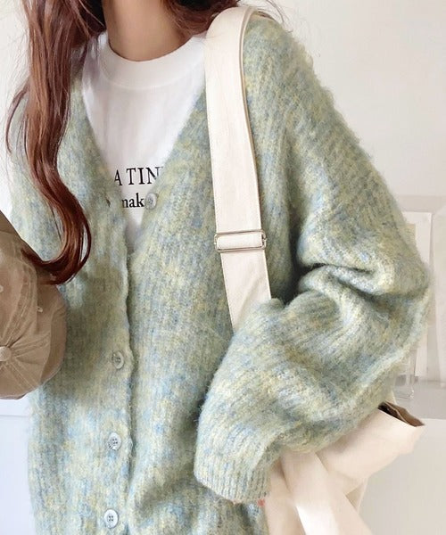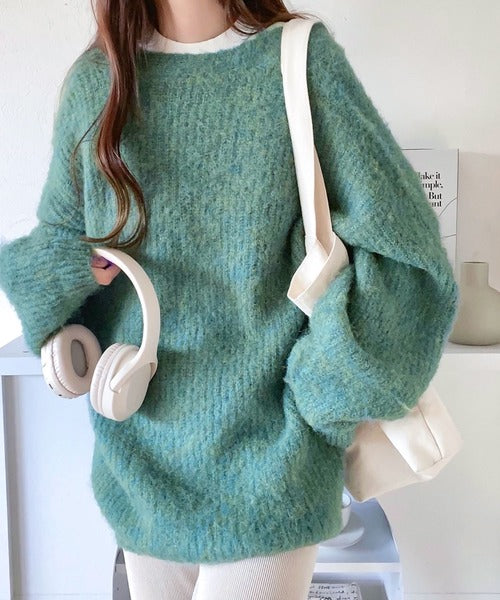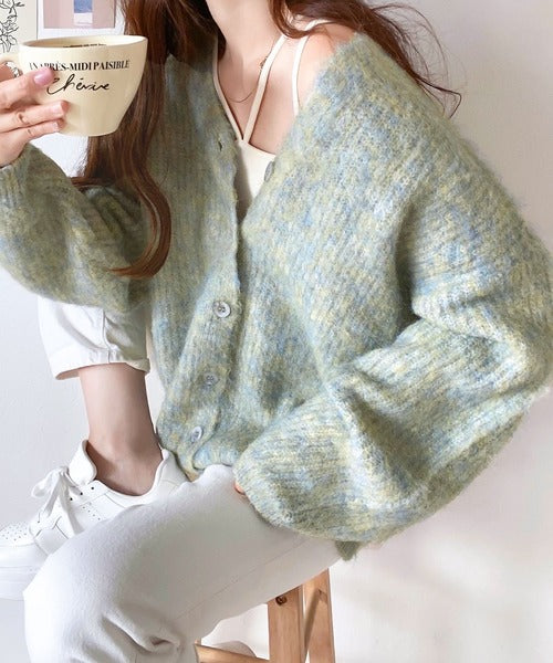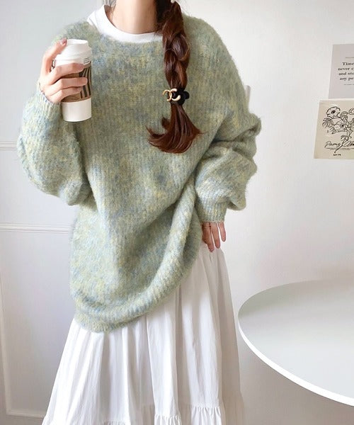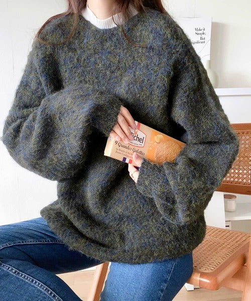 ふわふわの素材感とミックスカラー糸でこなれた印象に。