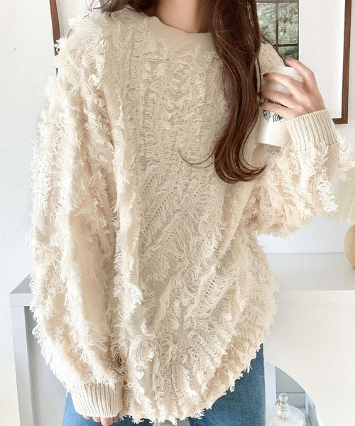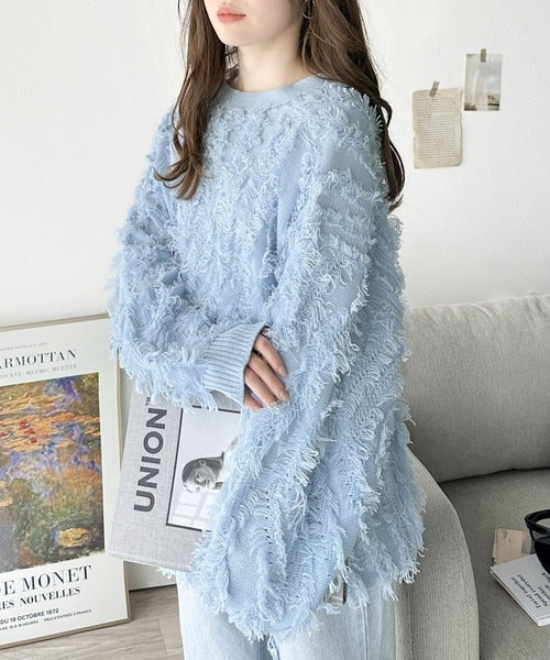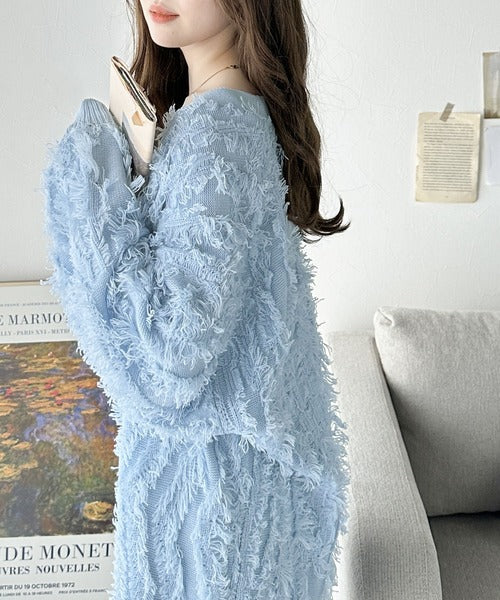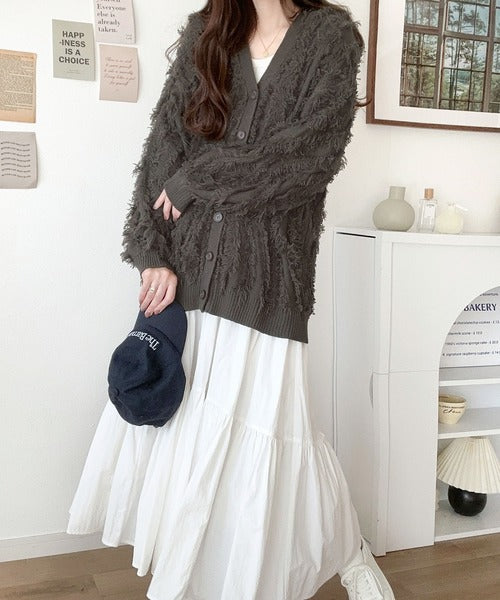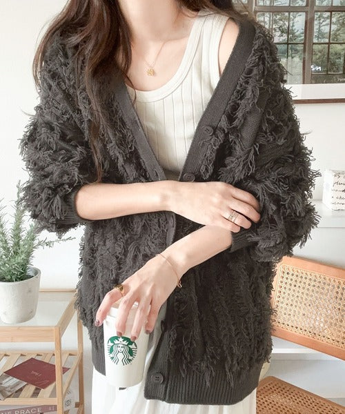 【mily bilet】一枚で旬スタイル。シャギーフリンジ使い前後2WAYカーディガン mi1149037