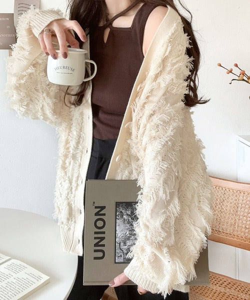 フリンジディテールがトレンド感たっぷりのカーディガン。