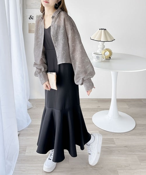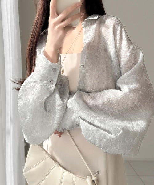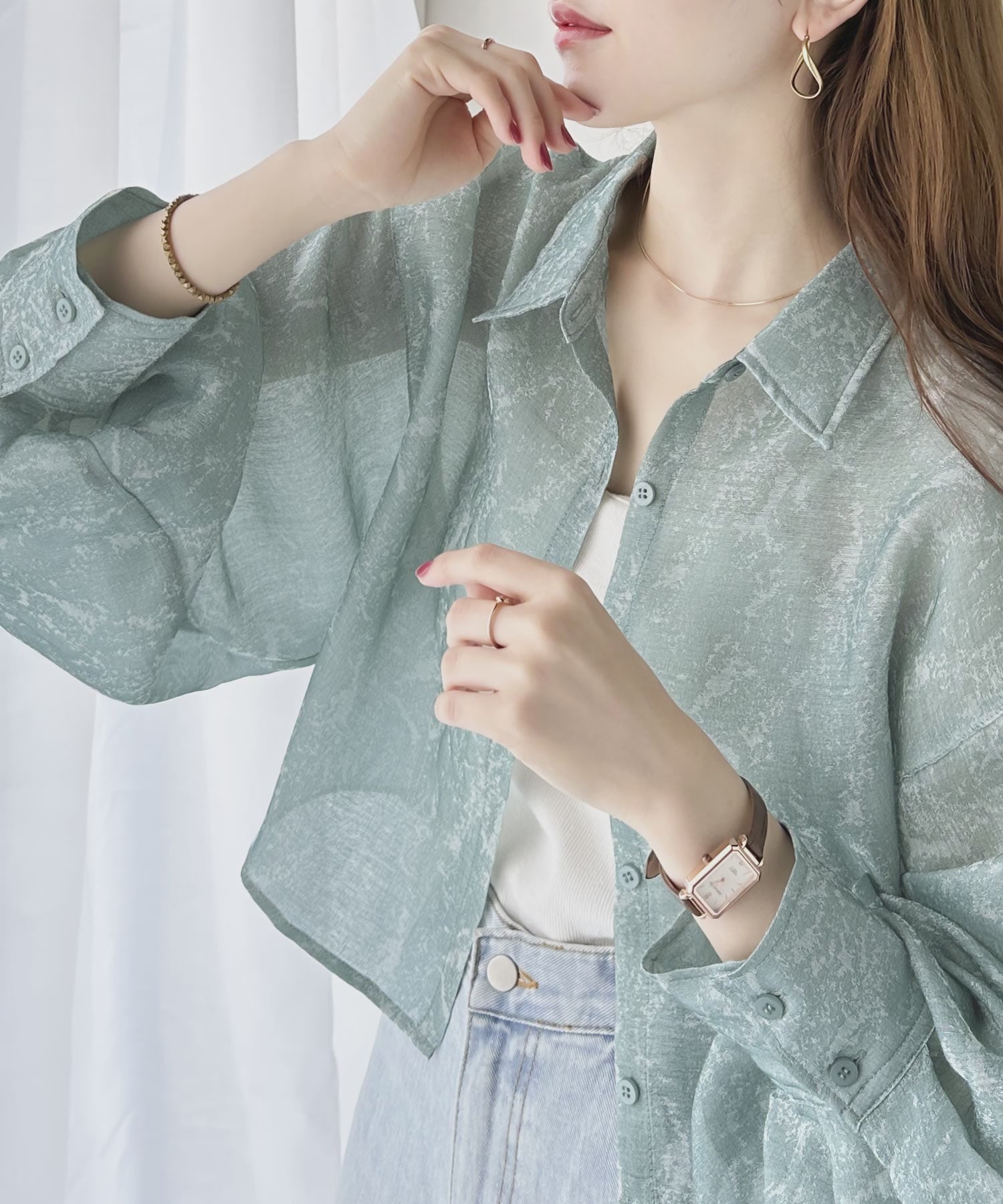 トレンドのショート丈シャツを大人っぽく楽しめるよう程よい透け感と絶妙なカラーで仕上げました。