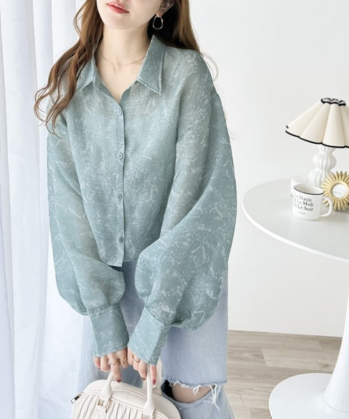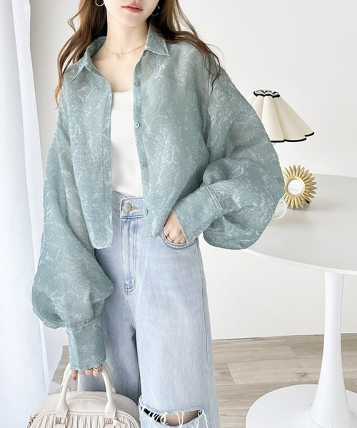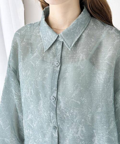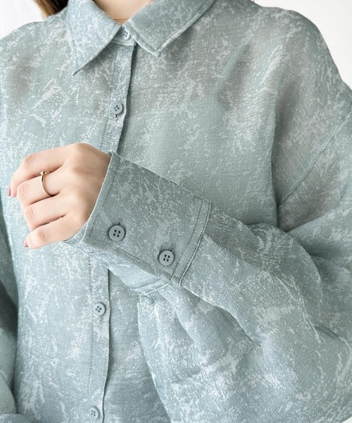 程よい透け感と上品なニュアンス柄で、着るだけでお洒落見え間違いなしの1枚!