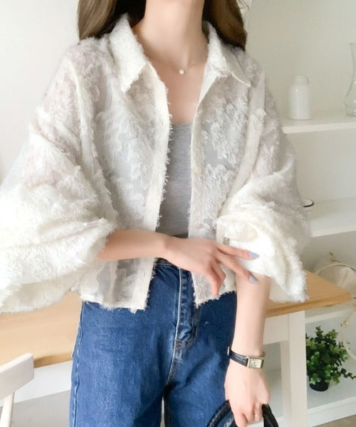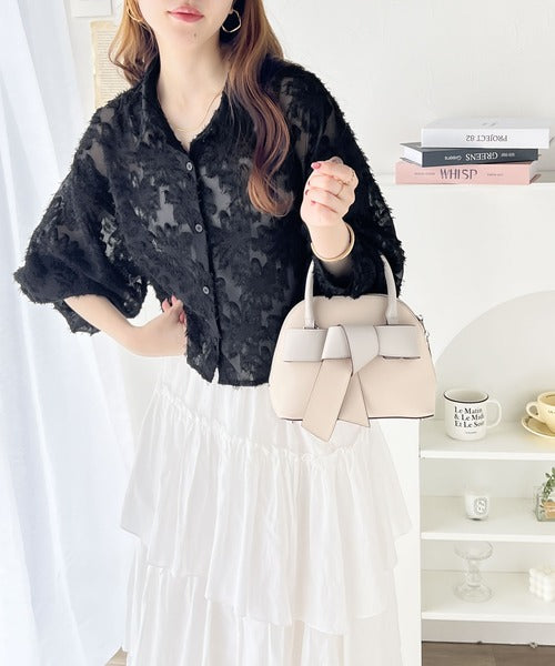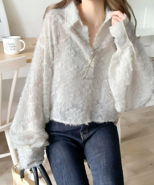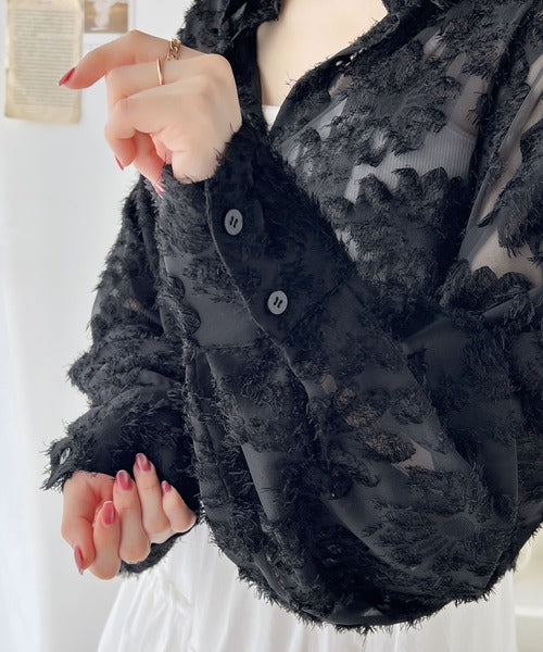 【mily bilet】1枚で華やか。シャギーシアージャガードクロップドシャツ mi1149047