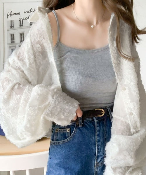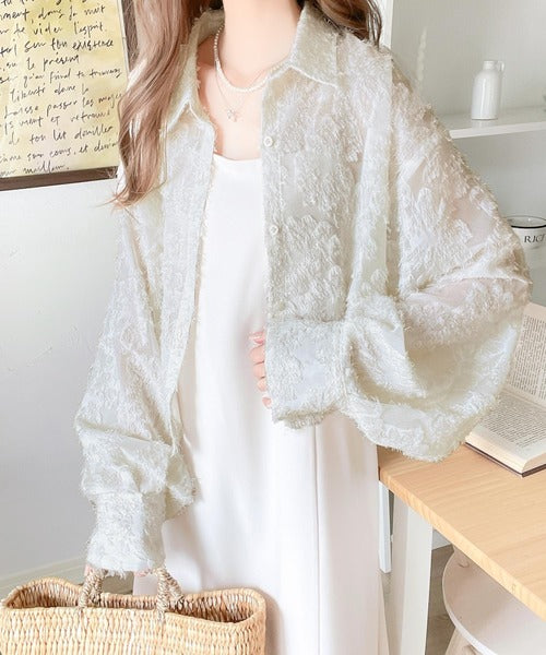 程よい透け感と上品なジャガード素材で、着るだけでお洒落見え間違いナシの1枚!