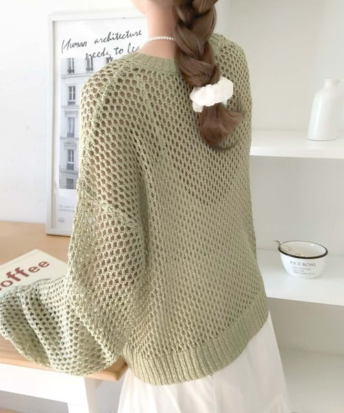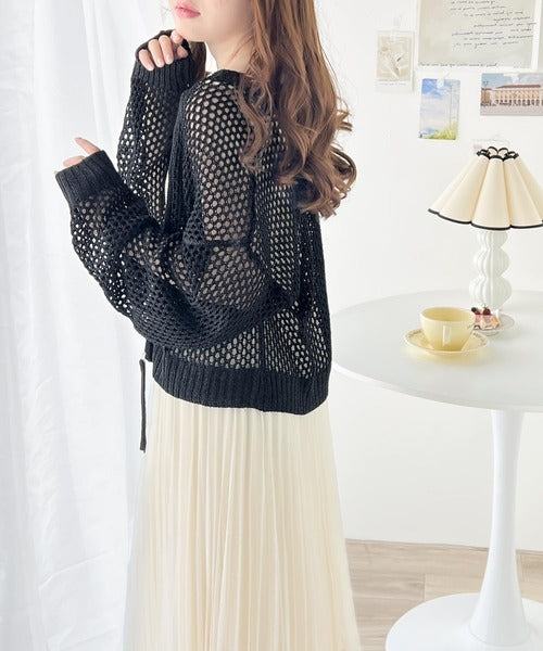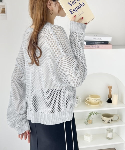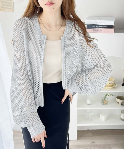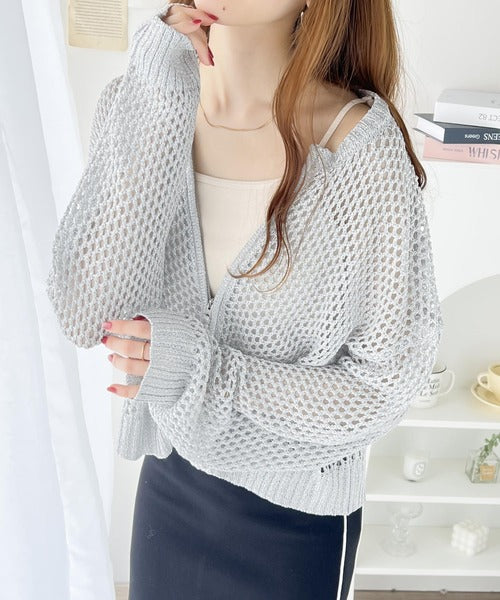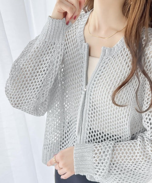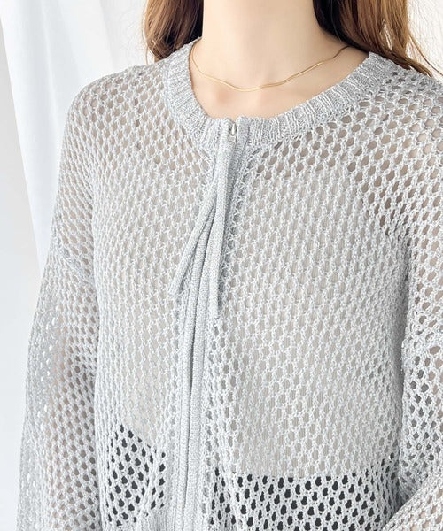 【mily bilet】ヘルシーな肌見せ叶う。メッシュ編みジップラメカーディガン mi1149048