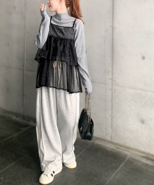 【mily bilet】大人の華やぎレイヤードアイテム。ラメチュールティアードキャミソール mi1149058