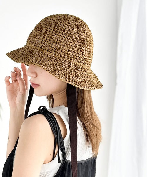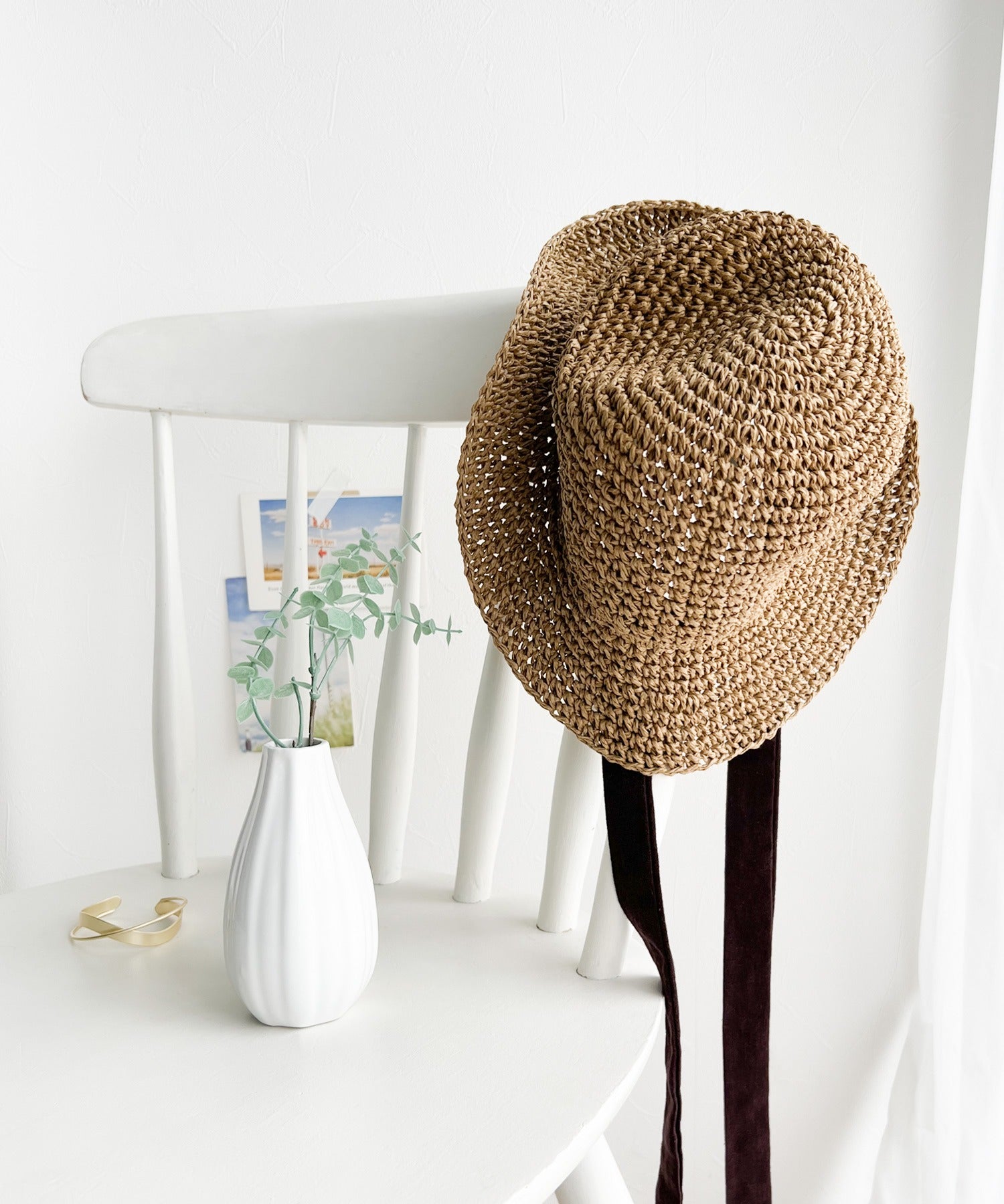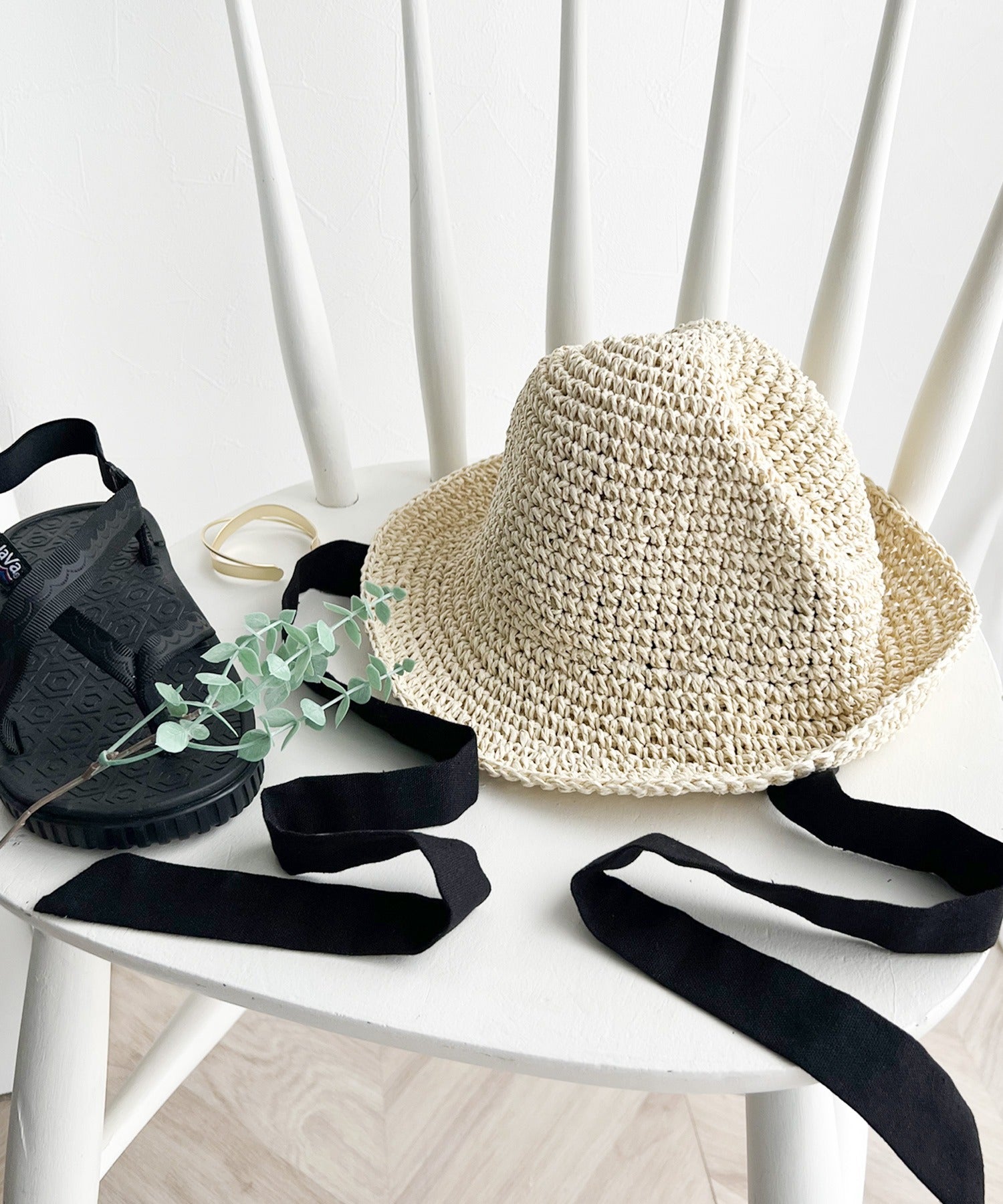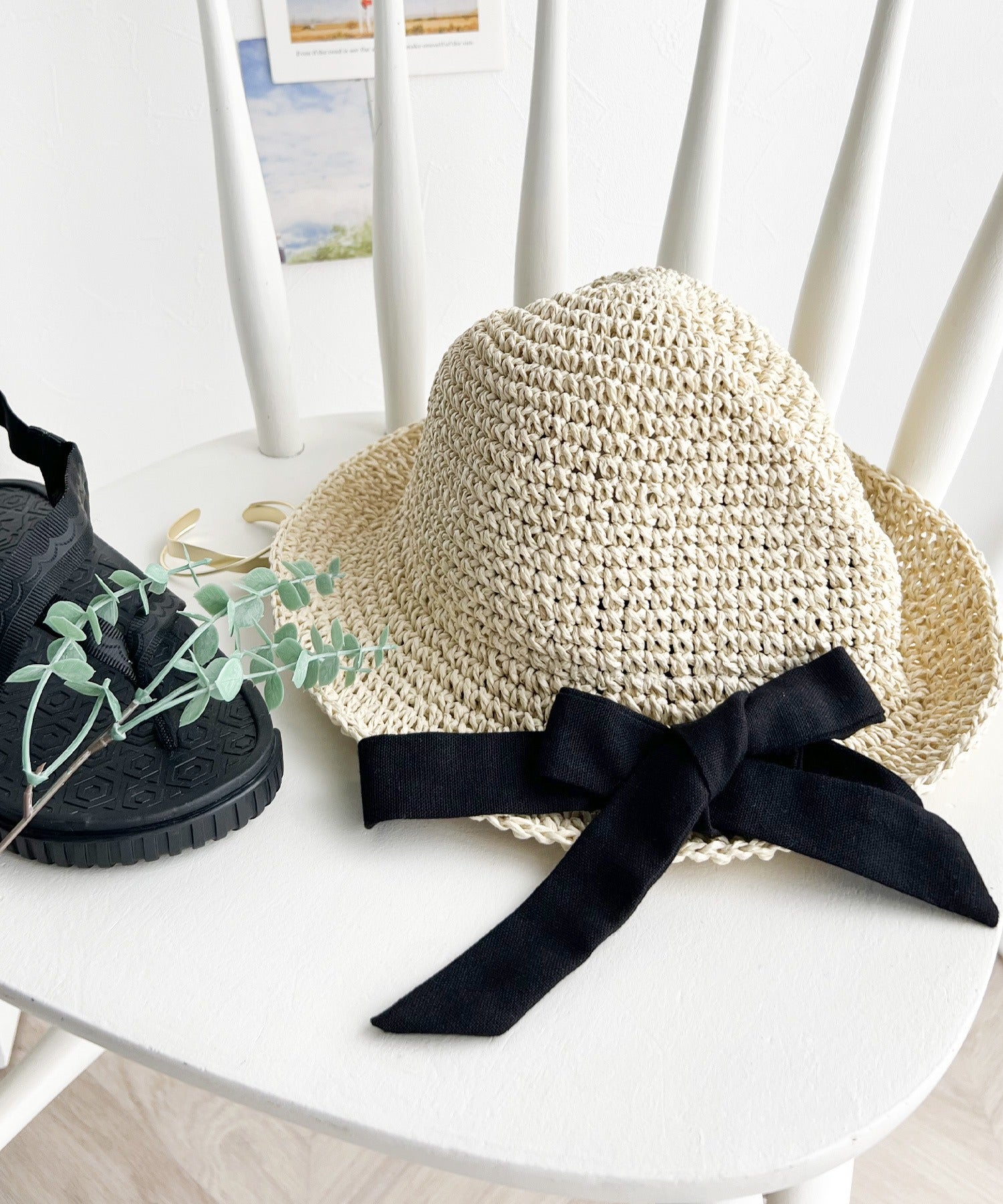 涼しげな素材感のストローハットに上品なリボン紐がアクセントとなり、おしゃれな雰囲気を演出します。