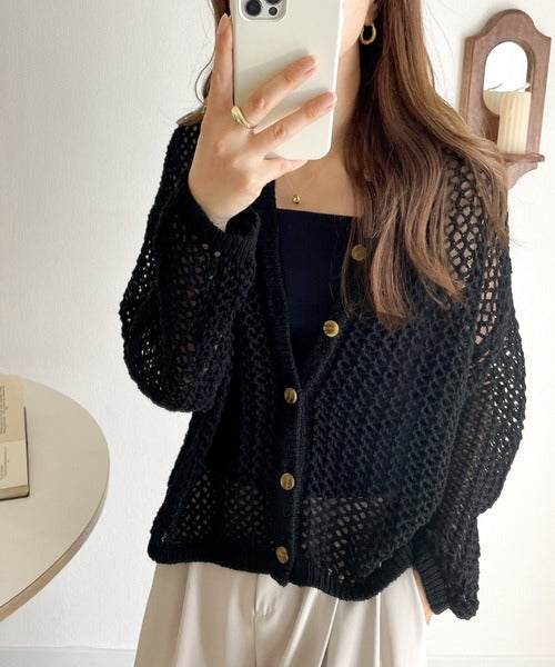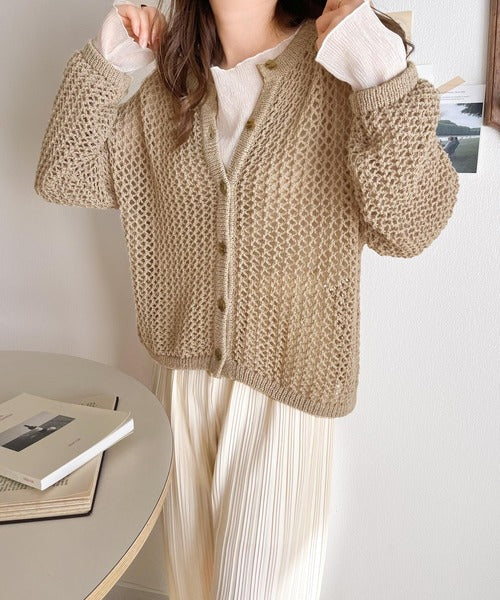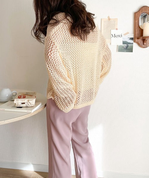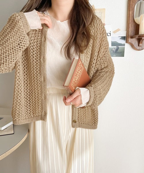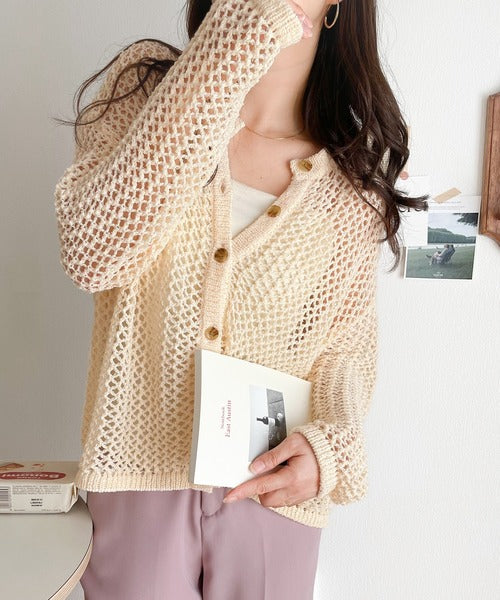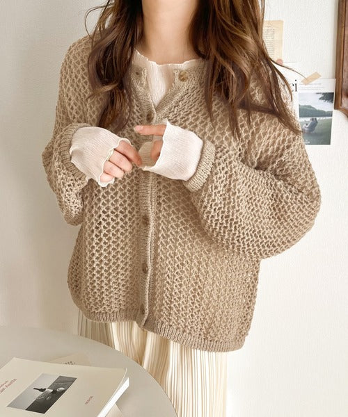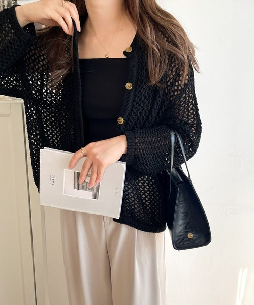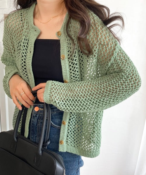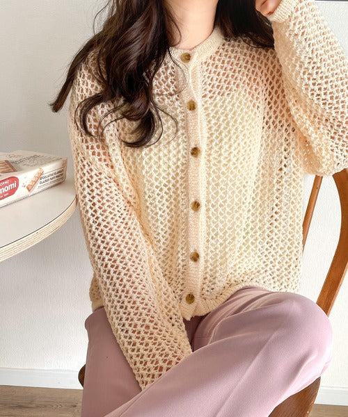 【mily bilet】程よい抜け感。2wayメッシュ透かし編みニットカーディガン mi1169003