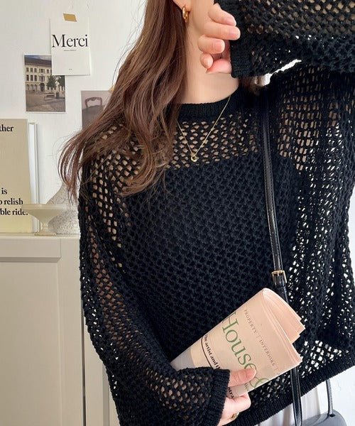 インナーが透ける編み地で、着こなしの遊びができるニット!