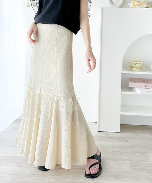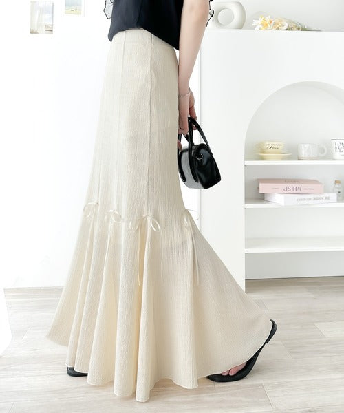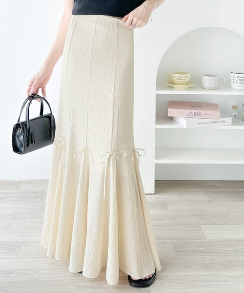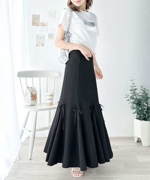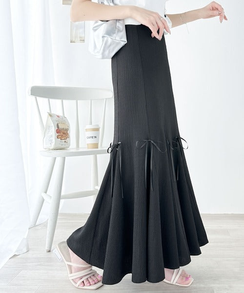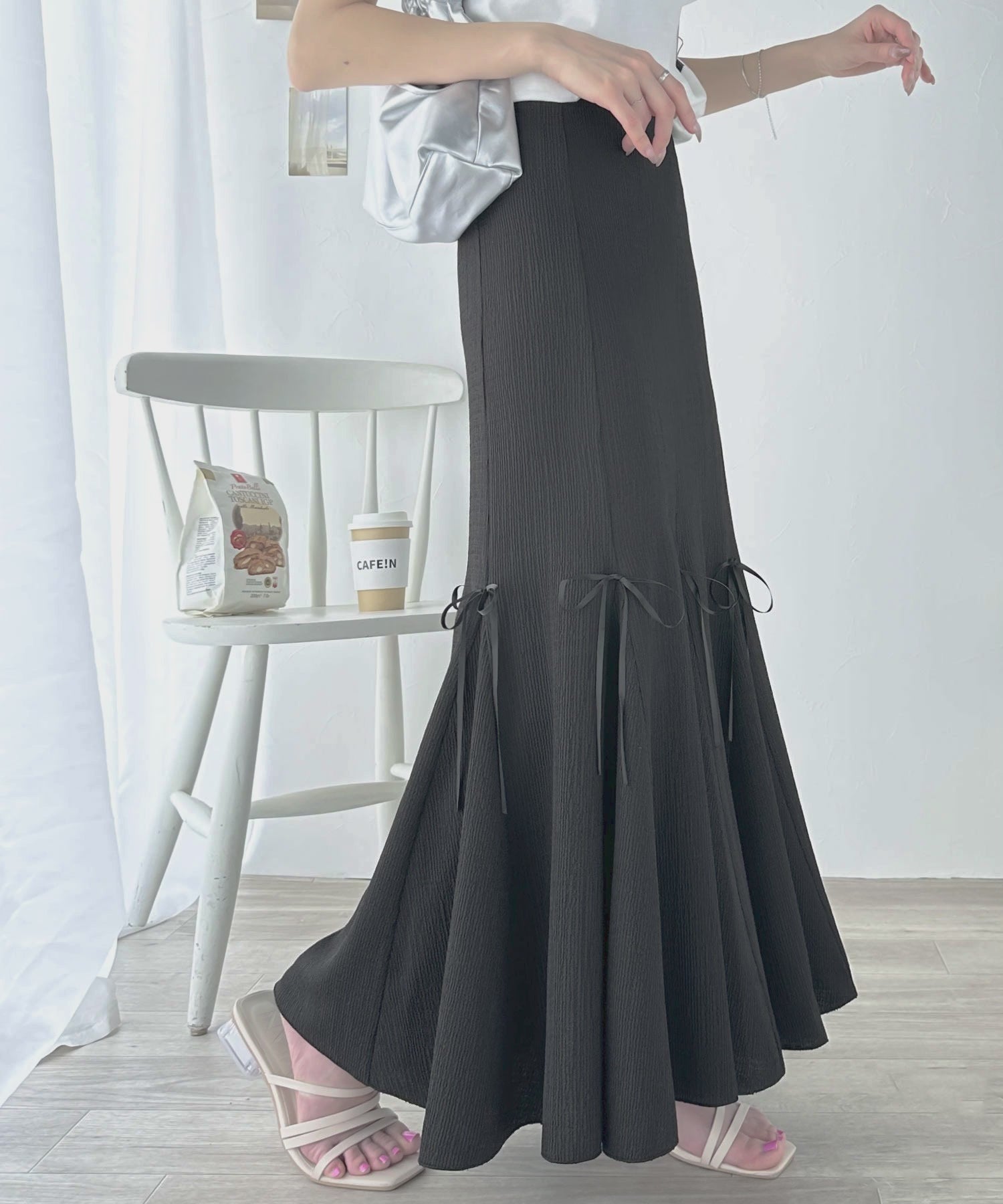 【mily bilet】キュートな着映えスタイルが叶う。リップルリボン使いマーメイドスカート mi1329001