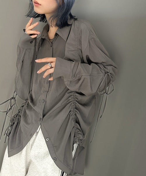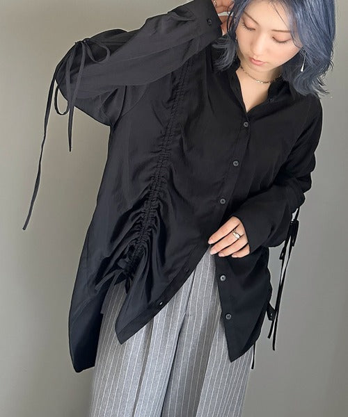 【mily bilet】大人のモード感漂う。ドロストリボンオーバーサイズシャツ mi1329004