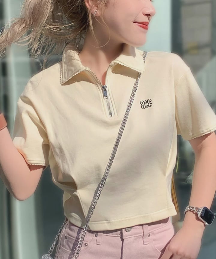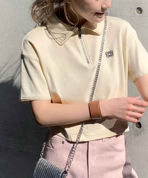 【mily bilet】デイリースタイルをワンランクアップ!ピコレース使い胸刺繍ピグメントZIPポロシャツ mi1329029