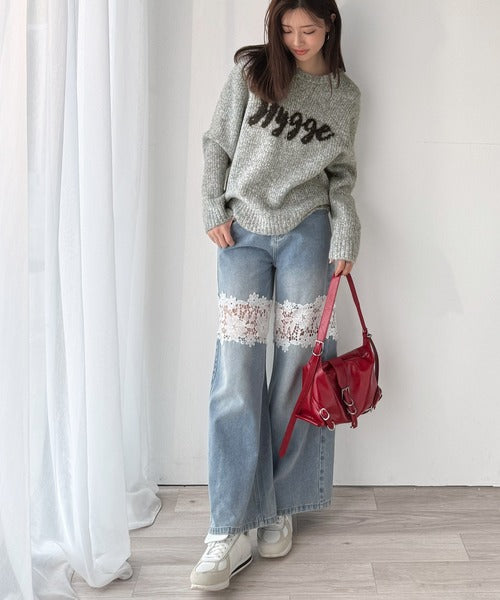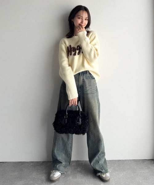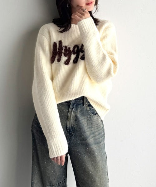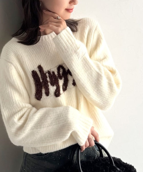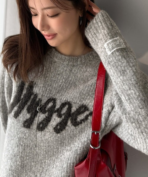 【mily bilet】フェザージャガードロゴミックスニットプルオーバー(長袖) mi1329055