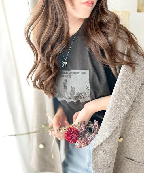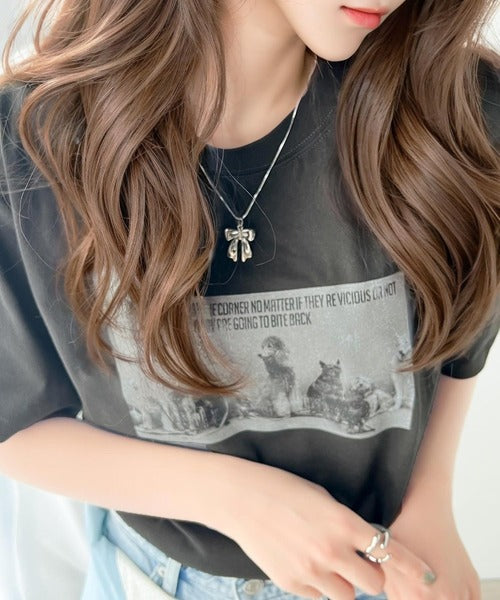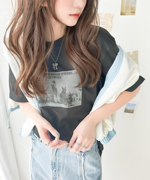 スタイリングの主役に。綿100%アニマルフォトプリントTシャツ mo1310040