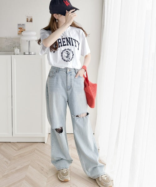 程よい抜け感を。綿100%カレッジロゴプリントTシャツ mo1310044