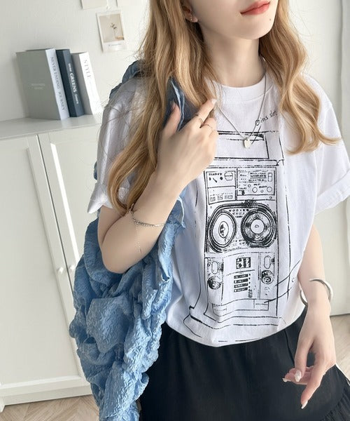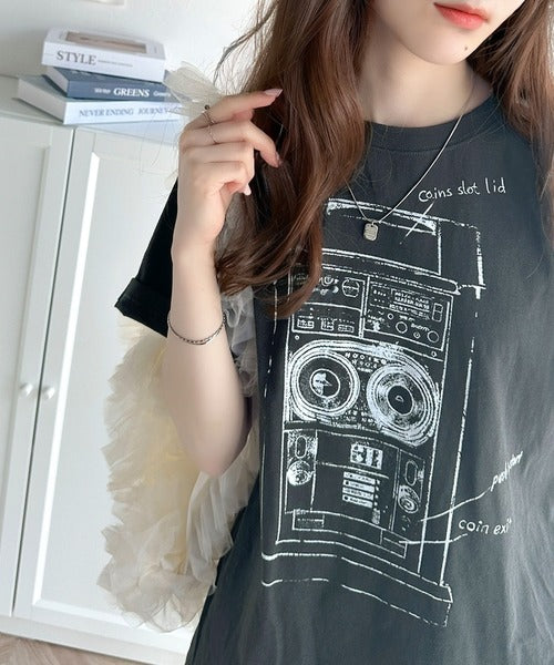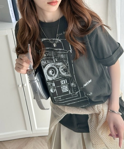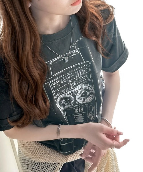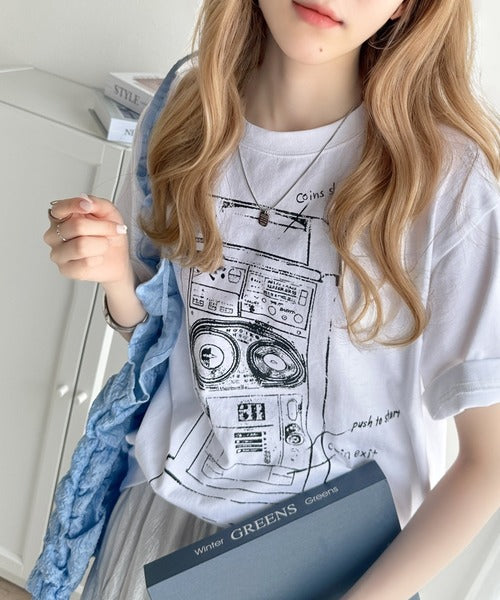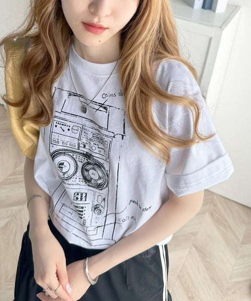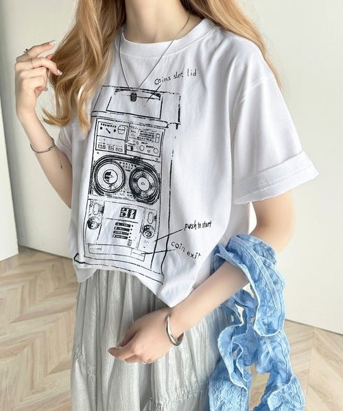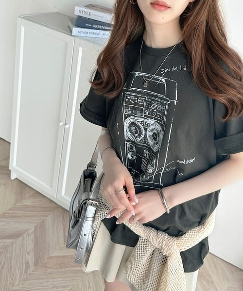 トレンドのレトロ感が魅力。綿100%コインゲームレトログラフィックプリントTシャツ mo1310045