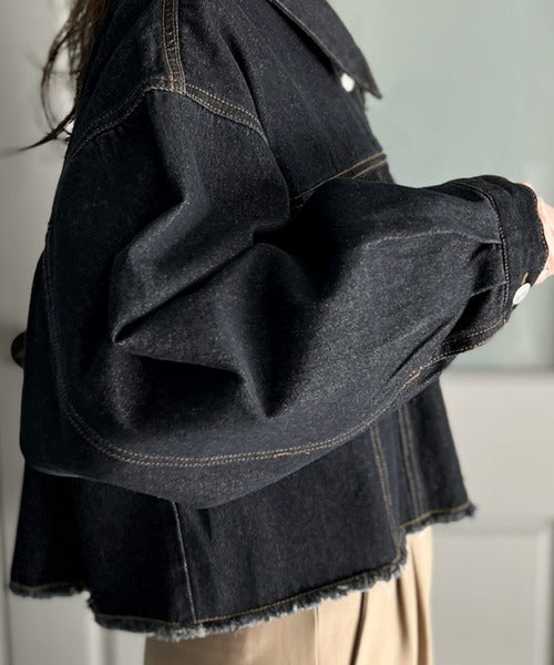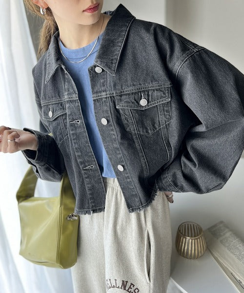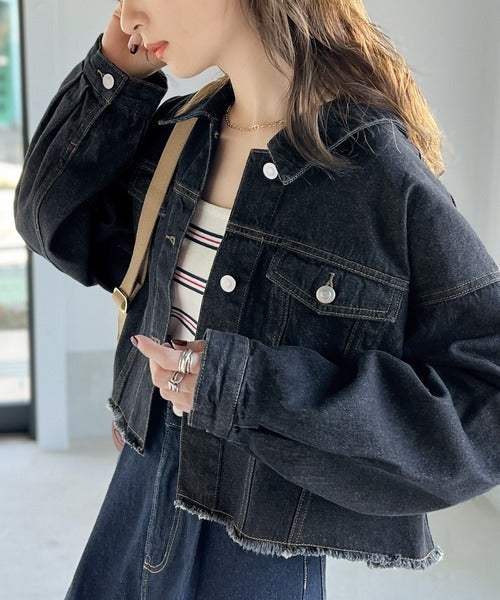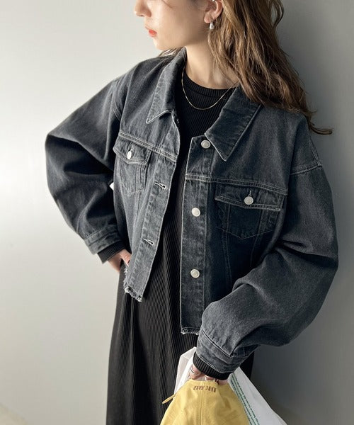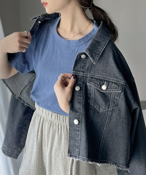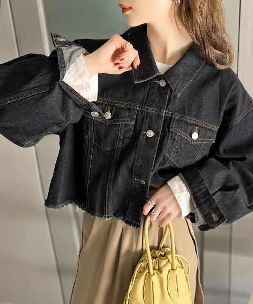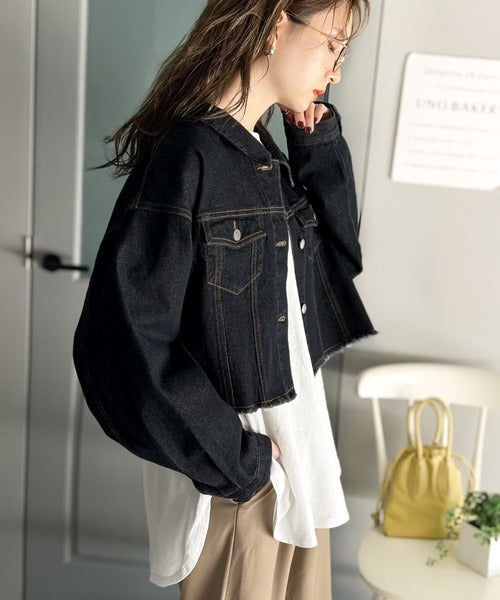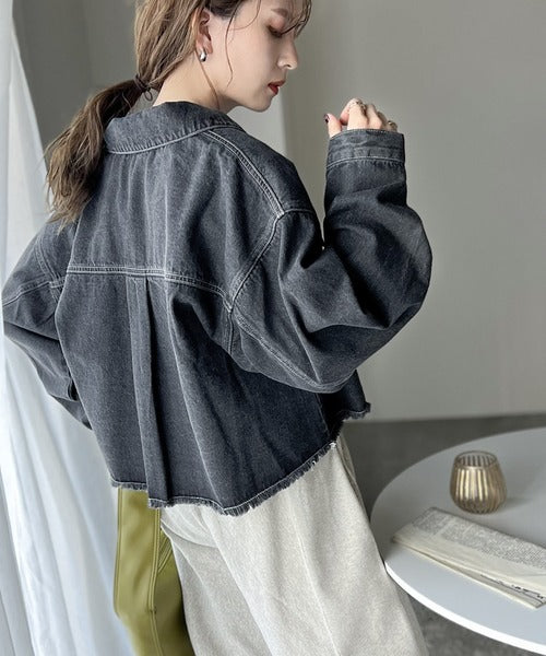 【ms+ ideal】こなれ度抜群!綿100%短丈カットオフデニムジャケット ms1200004