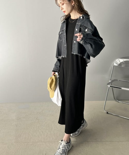 カジュアルになりがちなデニムジャケットもワンピースと合わせると
