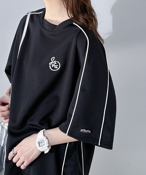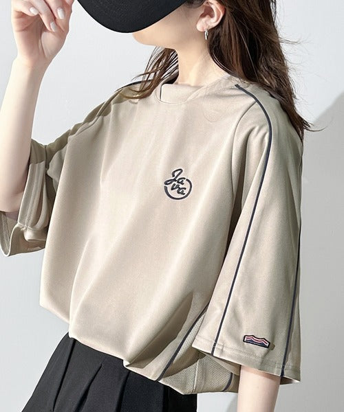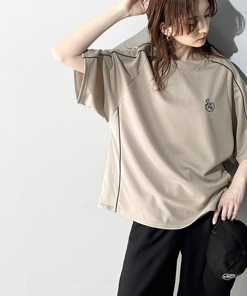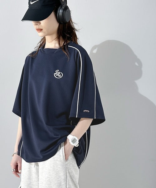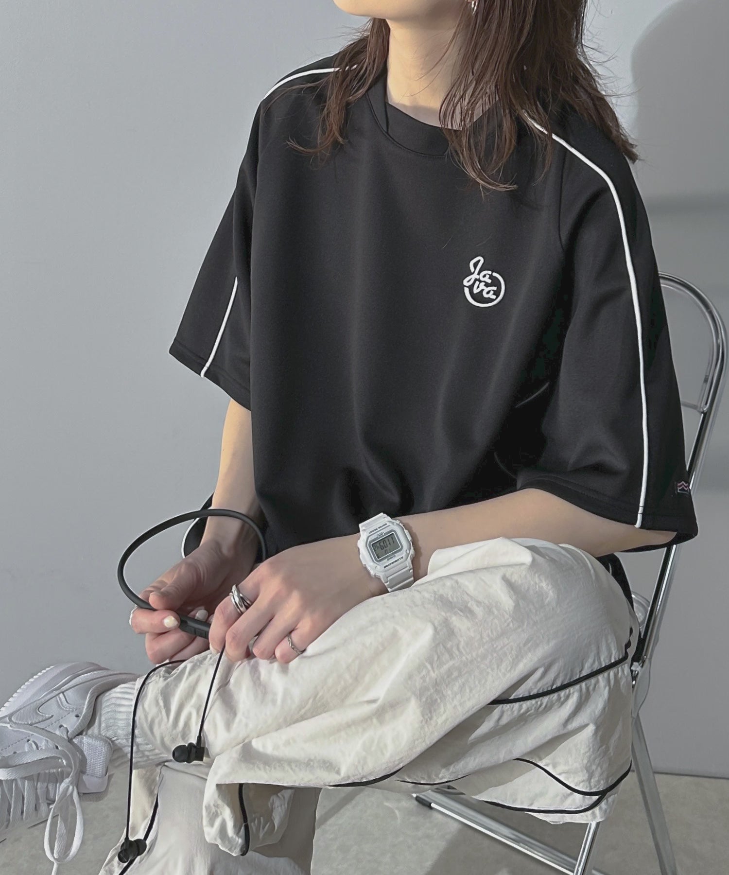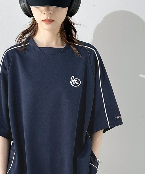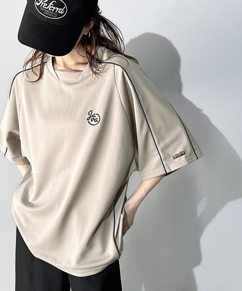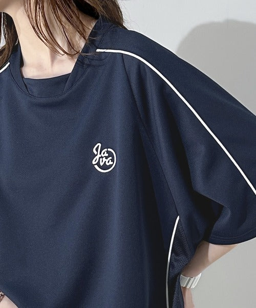 《Javaジャバコラボ》シンプルなのに格上げ。ライン入り胸刺繍サッカーTシャツ sp1010281