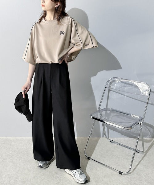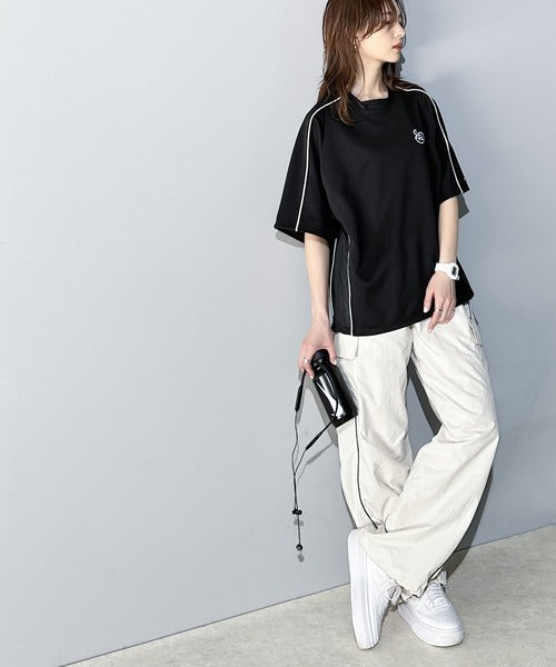 袖・脇の配色ラインがトレンド感アップのポイントになり、