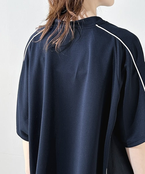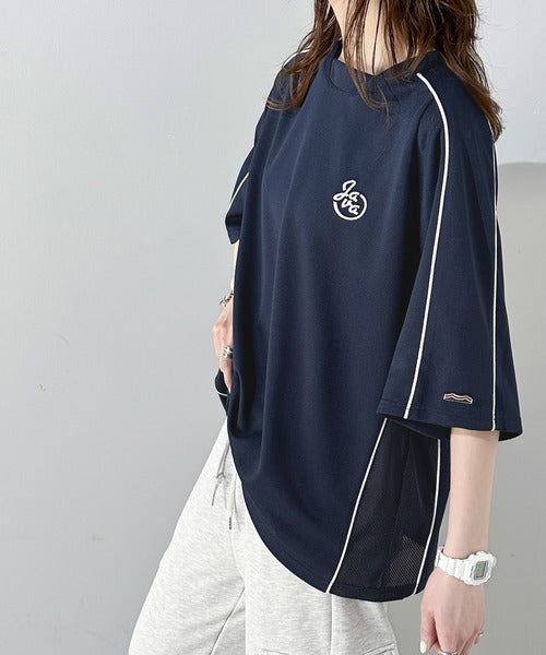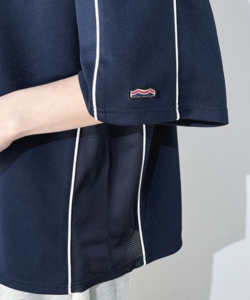 さらっとしたジャージ生地をメインに脇のメッシュ切替が涼しい通気性良い商品です。