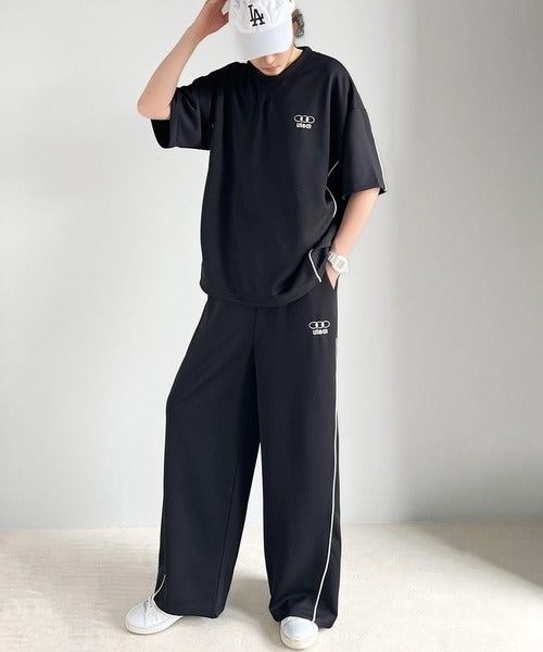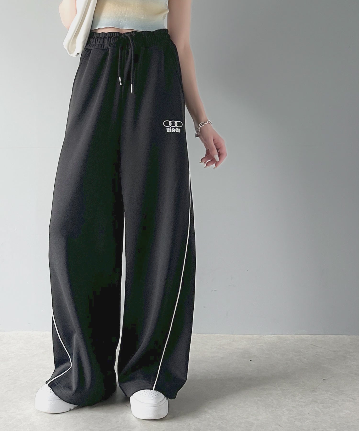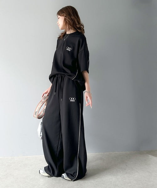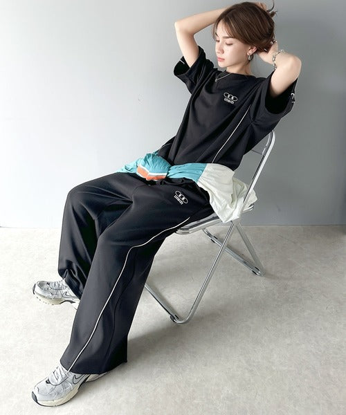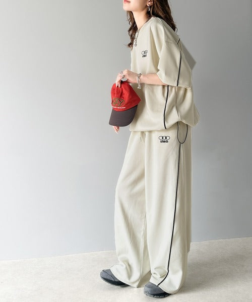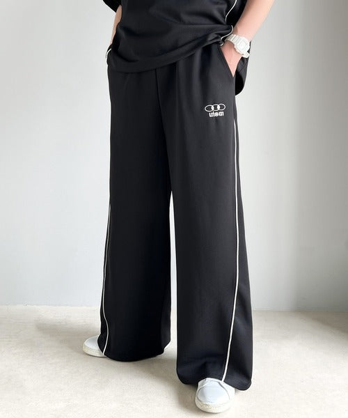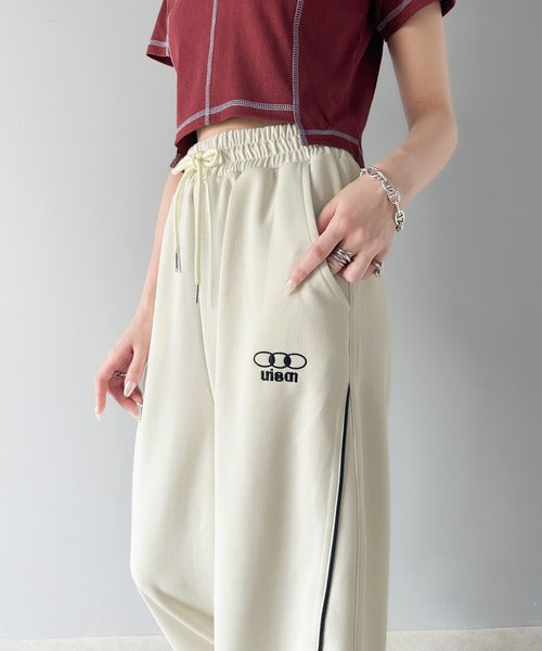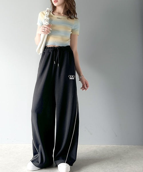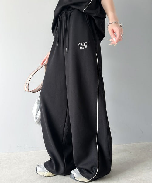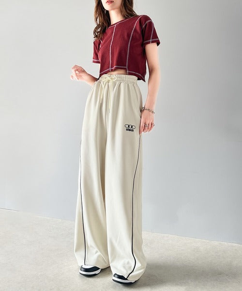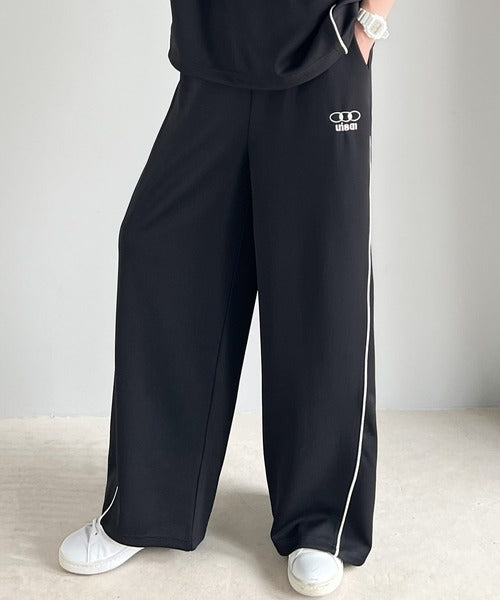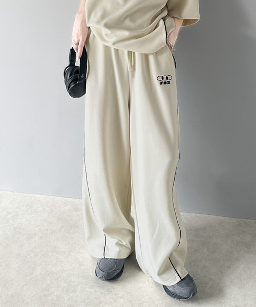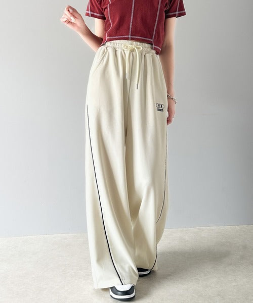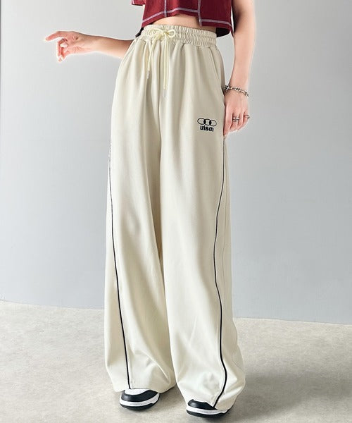 今年トレンドの配色パイピングが入ったトラックパンツ。