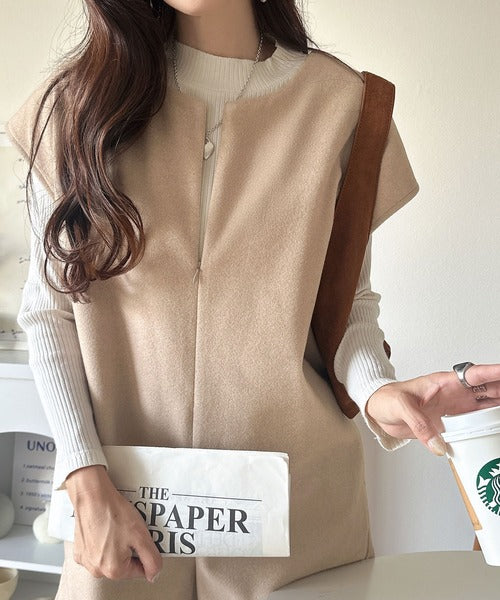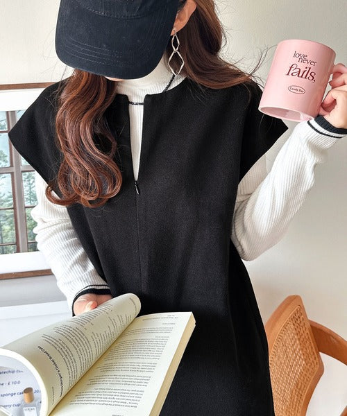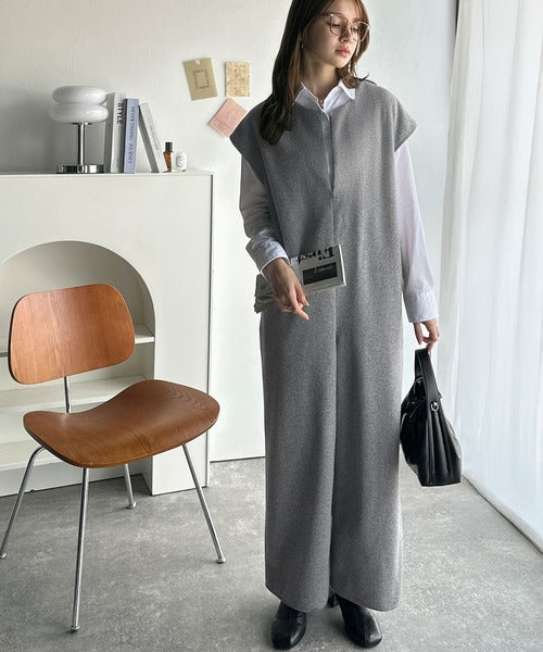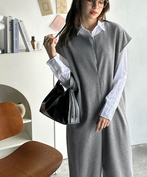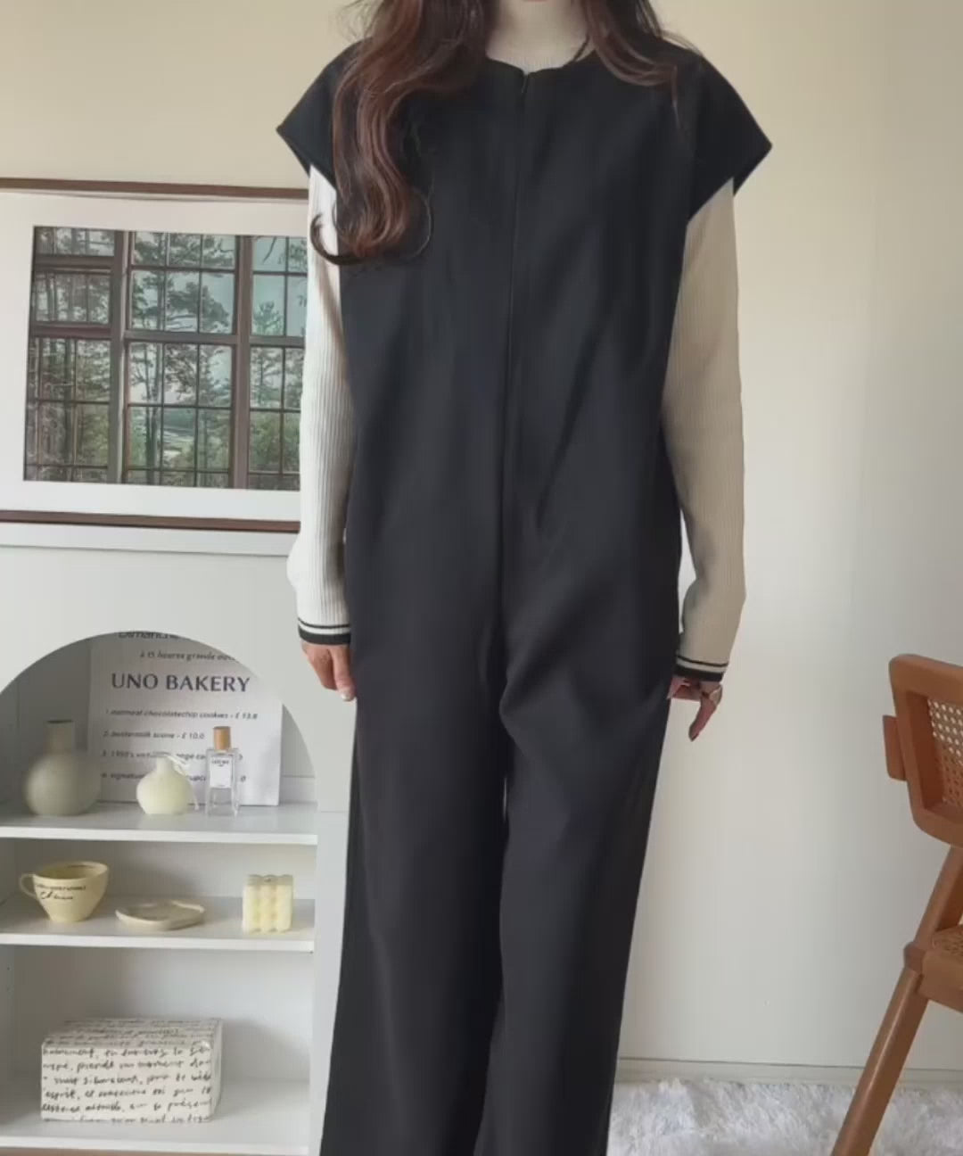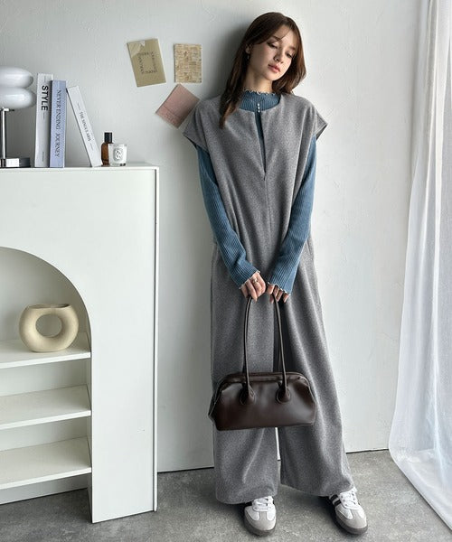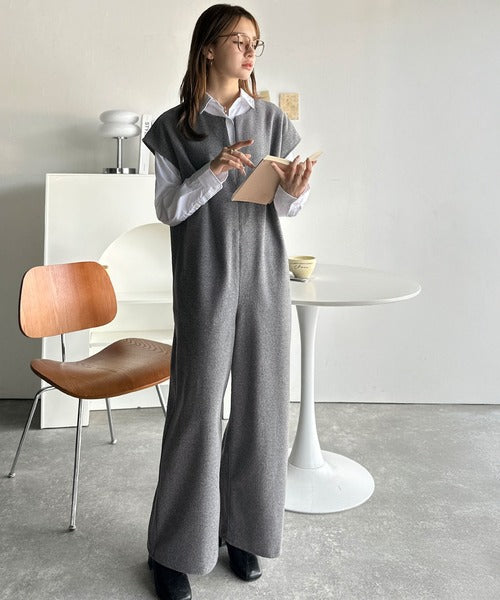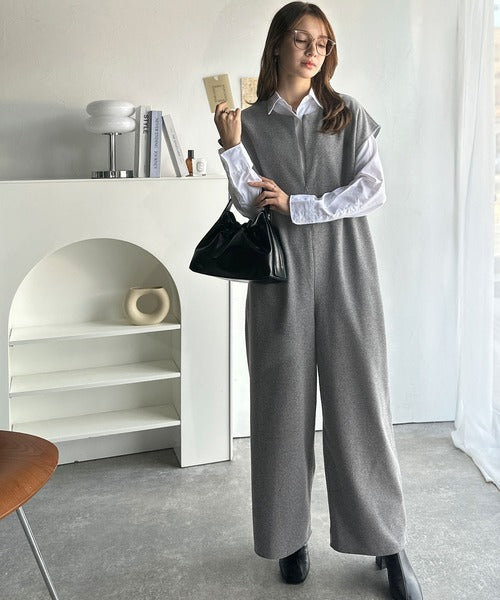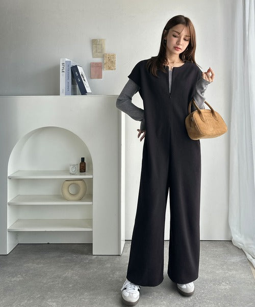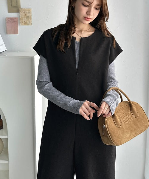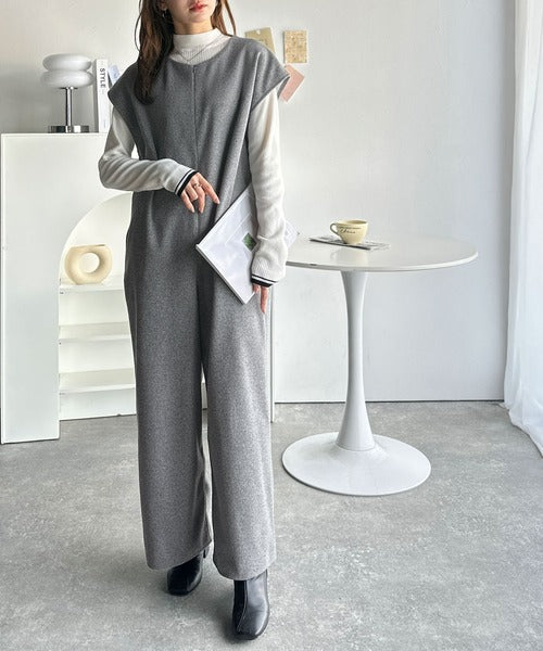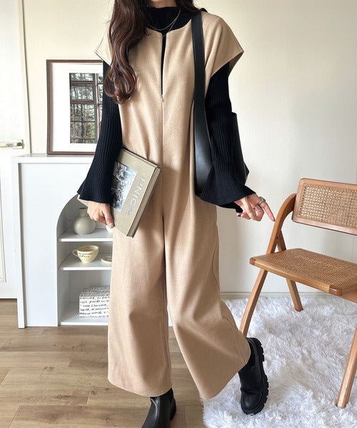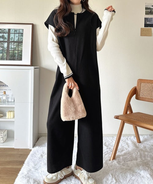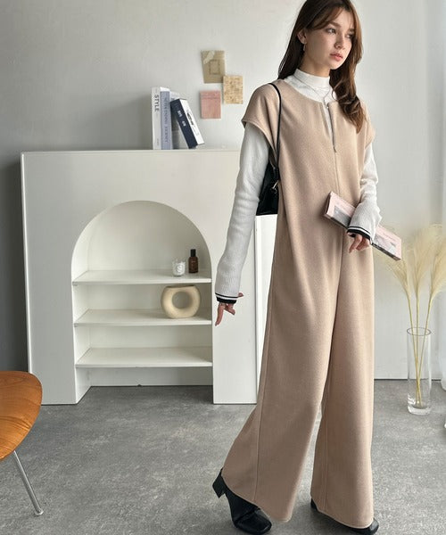 レイヤードコーデが楽しめる!フェイクウールハーフジップオールインワン(パンツ) ce1010494