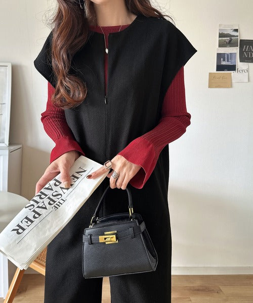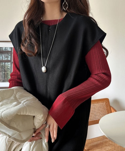体型カバーができるデザインで、レイヤードコーデも楽しめます。