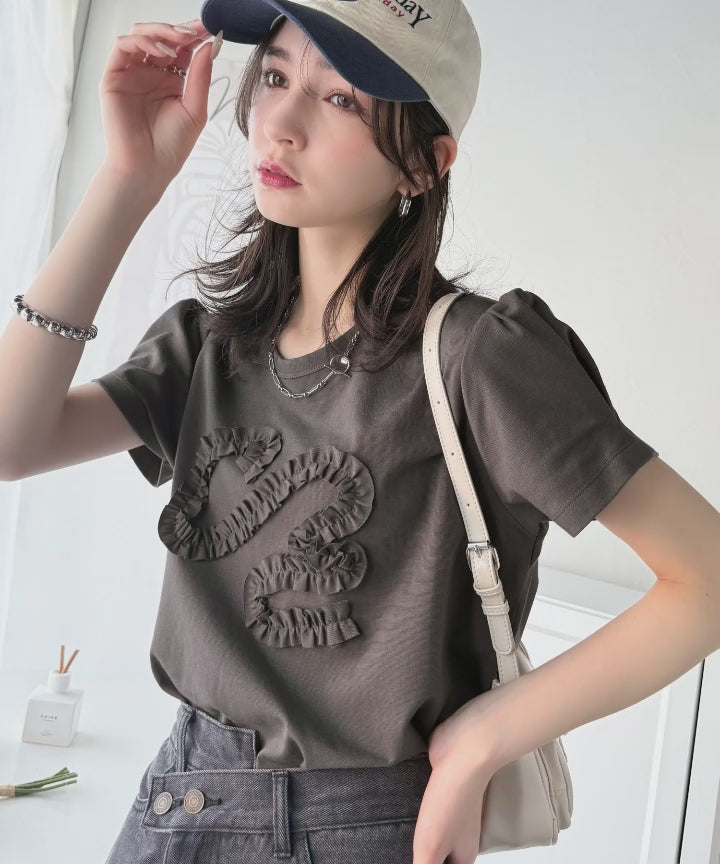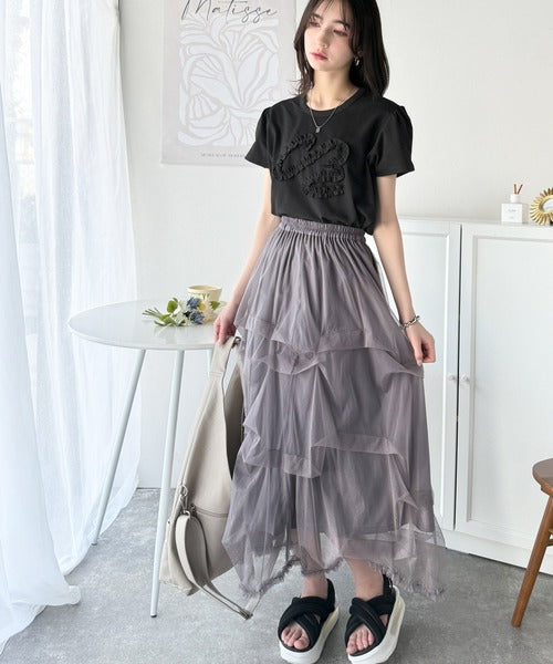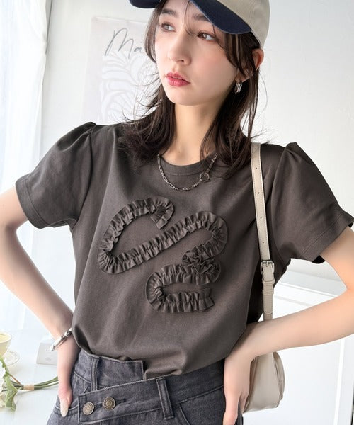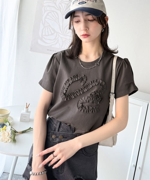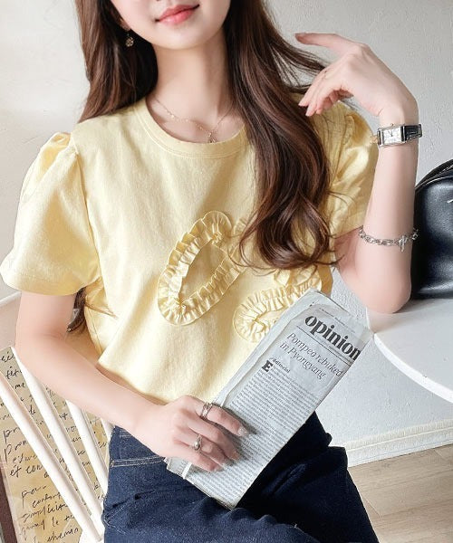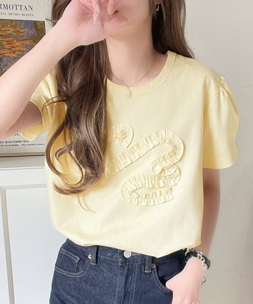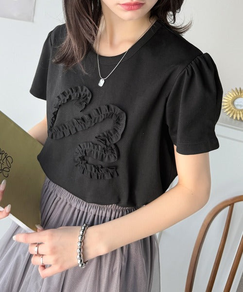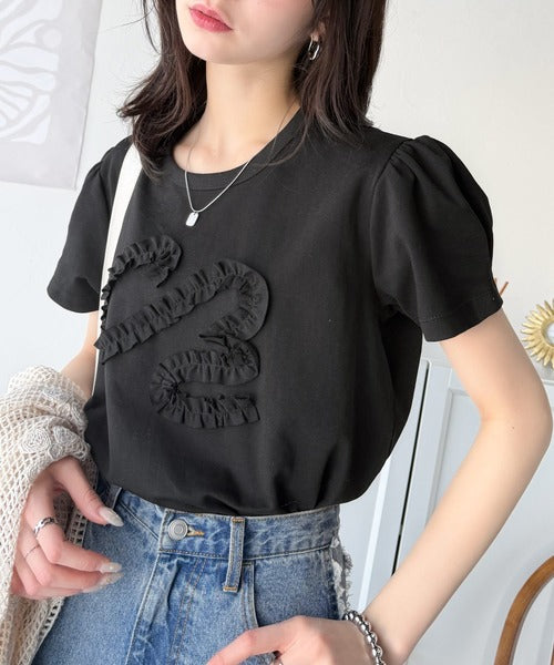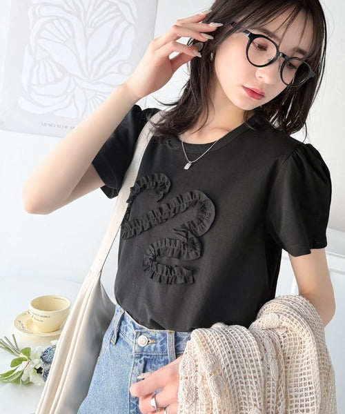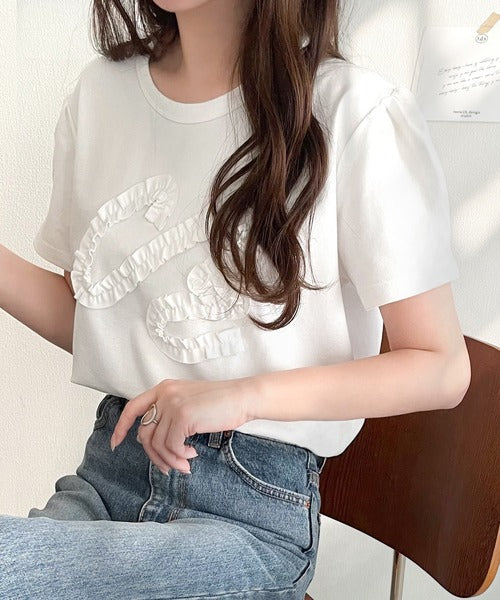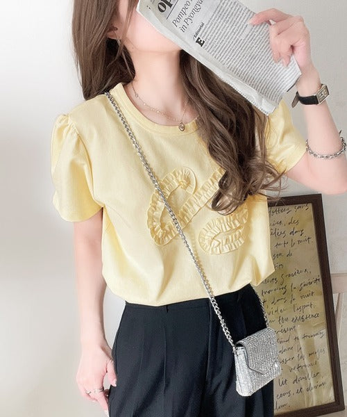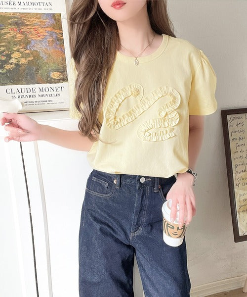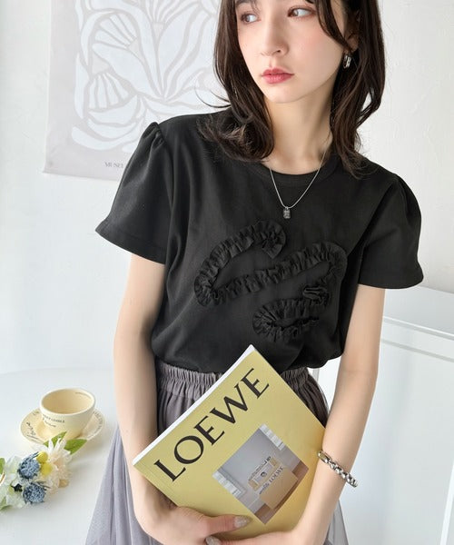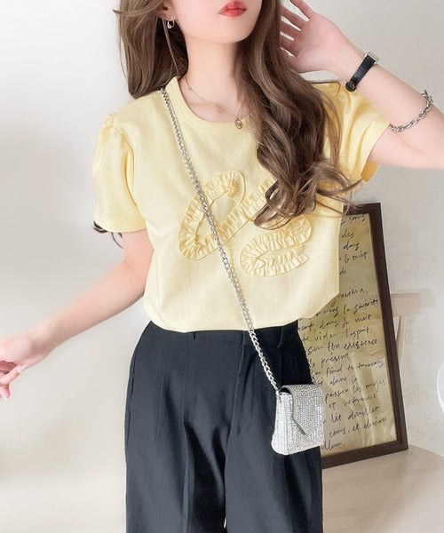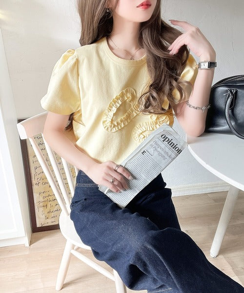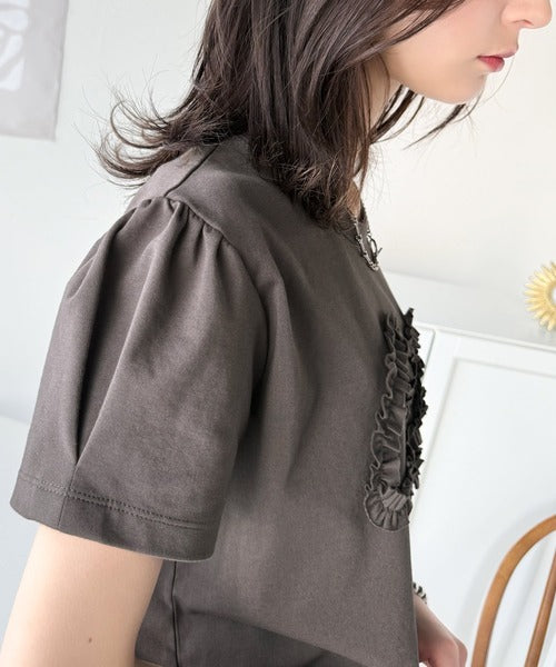 フリル刺繍でエレガントに。シルケットフリル刺繍パフスリーブプルオーバー(半袖) ce1050297