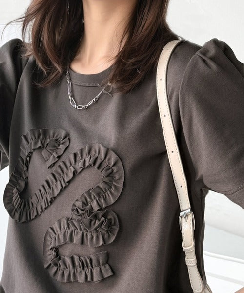 このシルケットフリル刺繍パフスリーブプルオーバーは、デザインにこだわった一品。