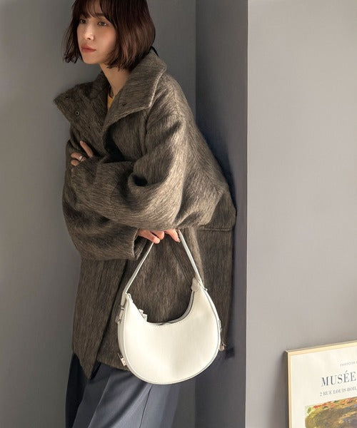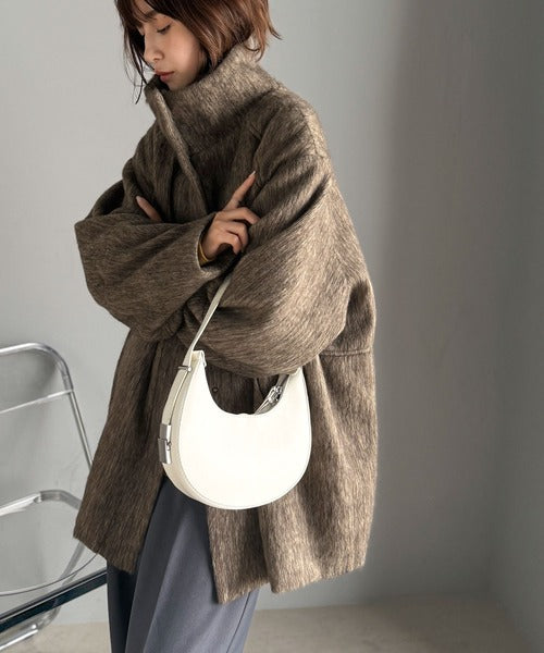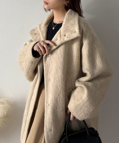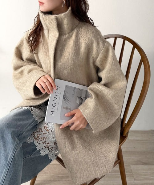 ベーシックとトレンドを両立。MIXシャギー比翼スタンドネックミドル丈コクーンスリーブコート ce1070166