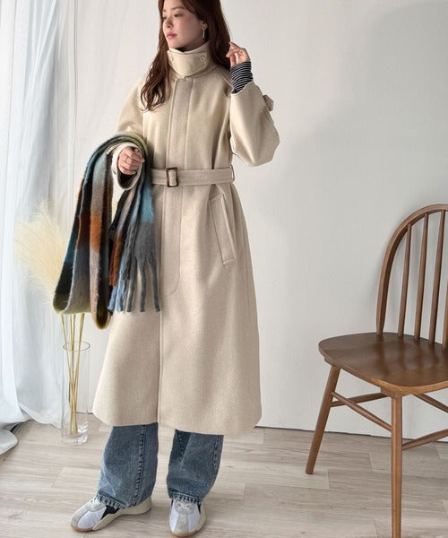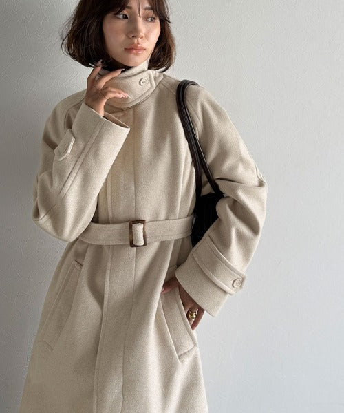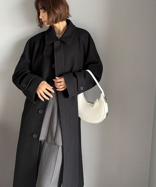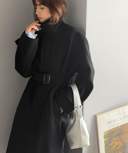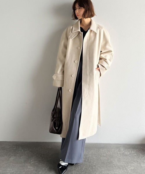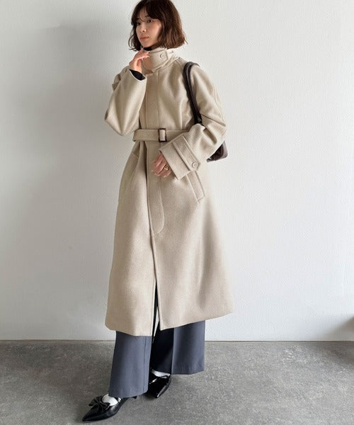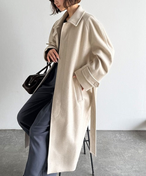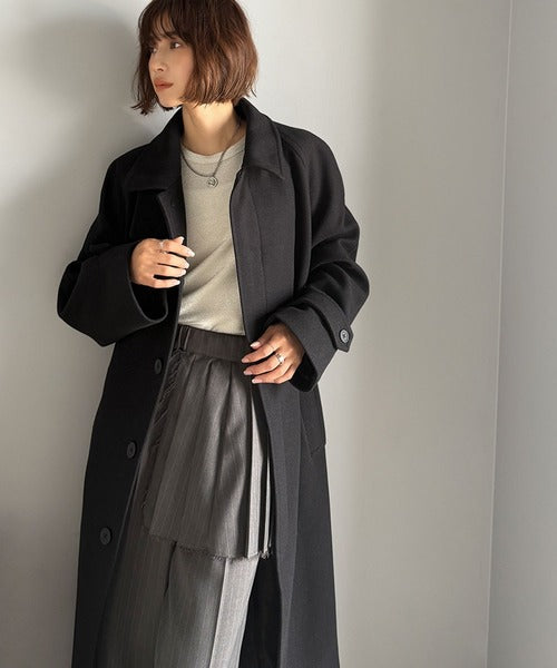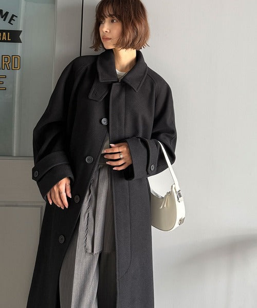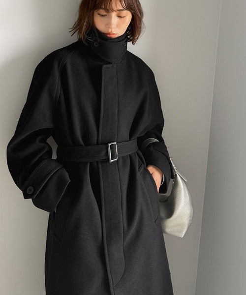 大人の魅力を引き立てる、上品な一着。ベルト付き比翼メルトンコート(ロング丈) ce1265007