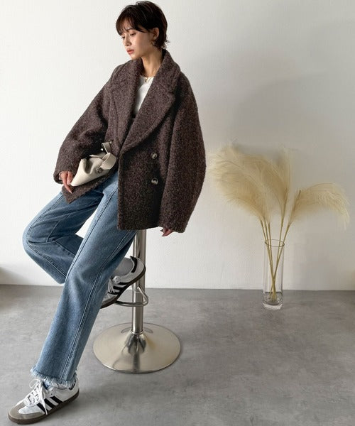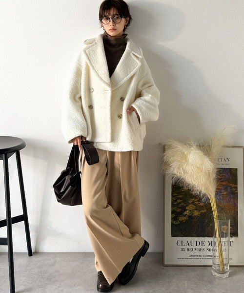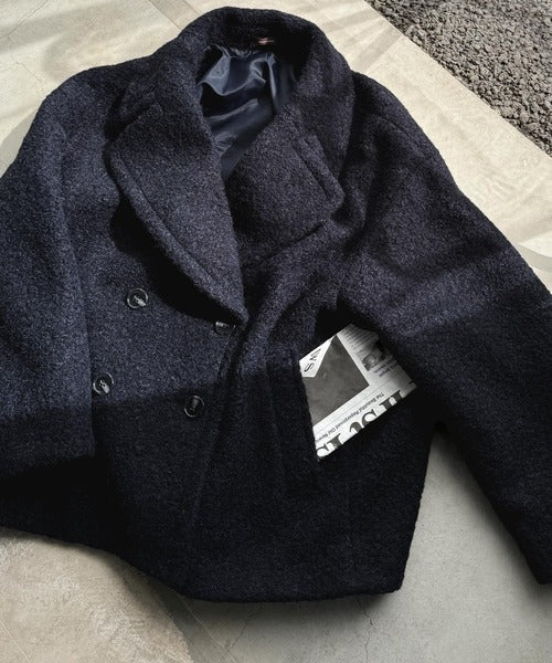 クラシカルなダブルボタンが大人のきちんと感を演出するPコート。