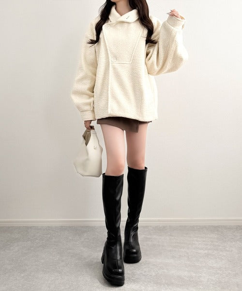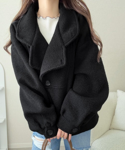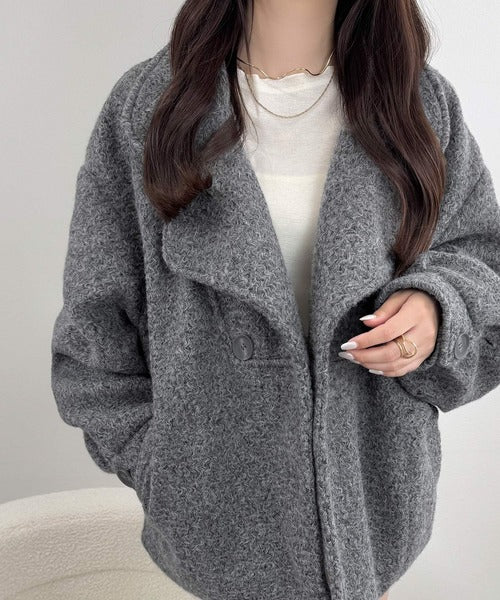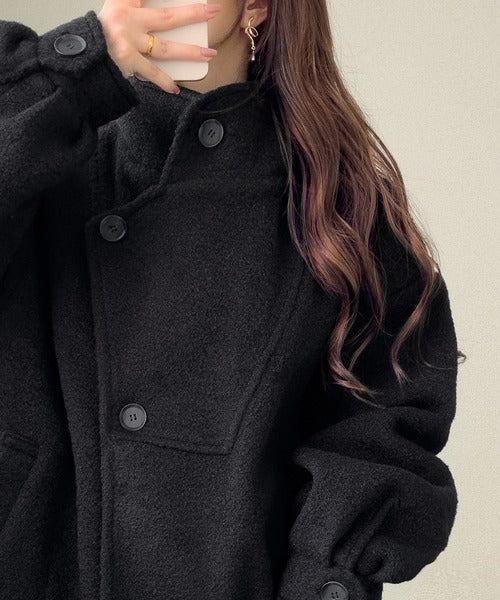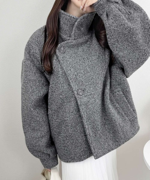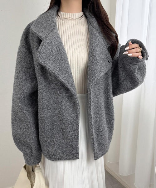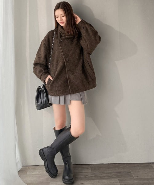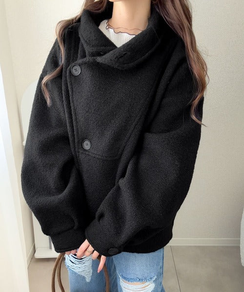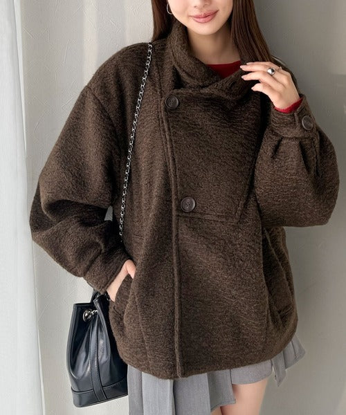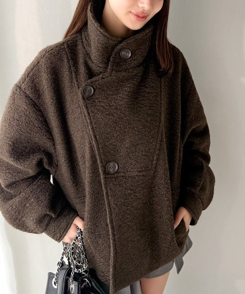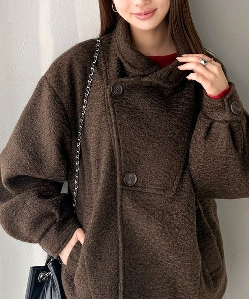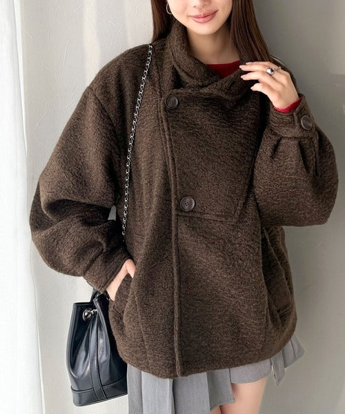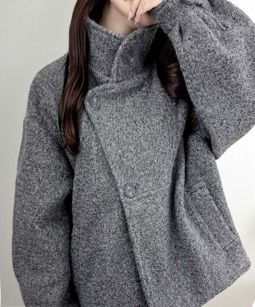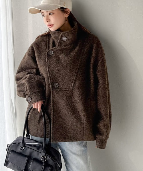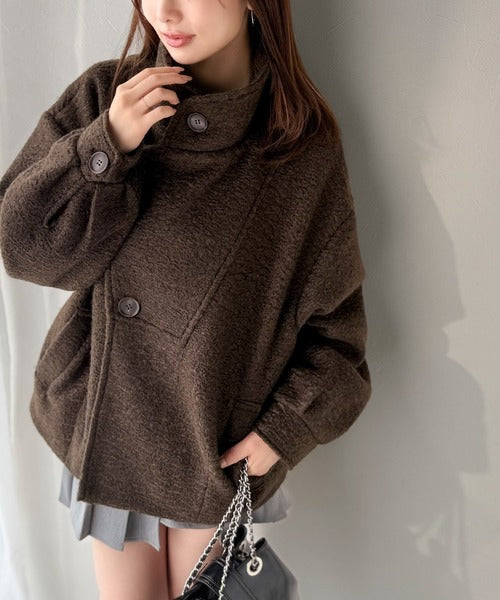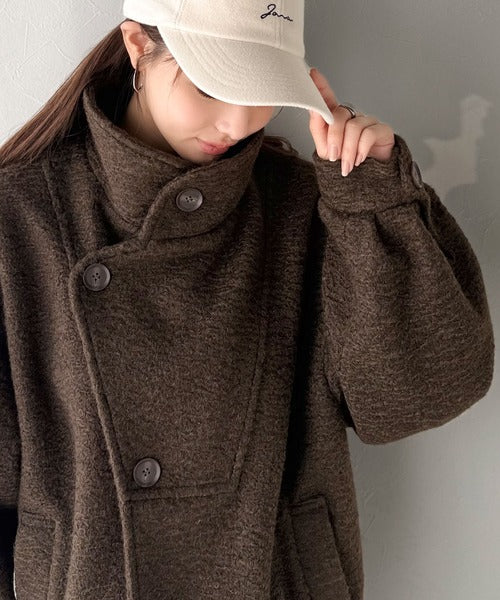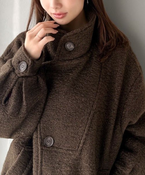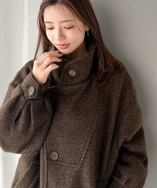 【mily bilet】コクーンで魅せる。ウールライクリングニットスタンドカラーコート mi1019095