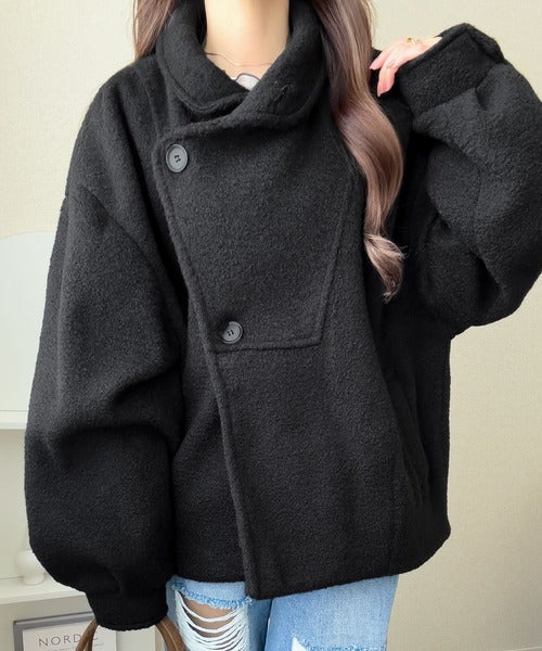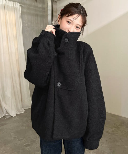 スタンドネックデザインにより、ボタンを閉めればマフラー不要で暖かさをキープ◎
